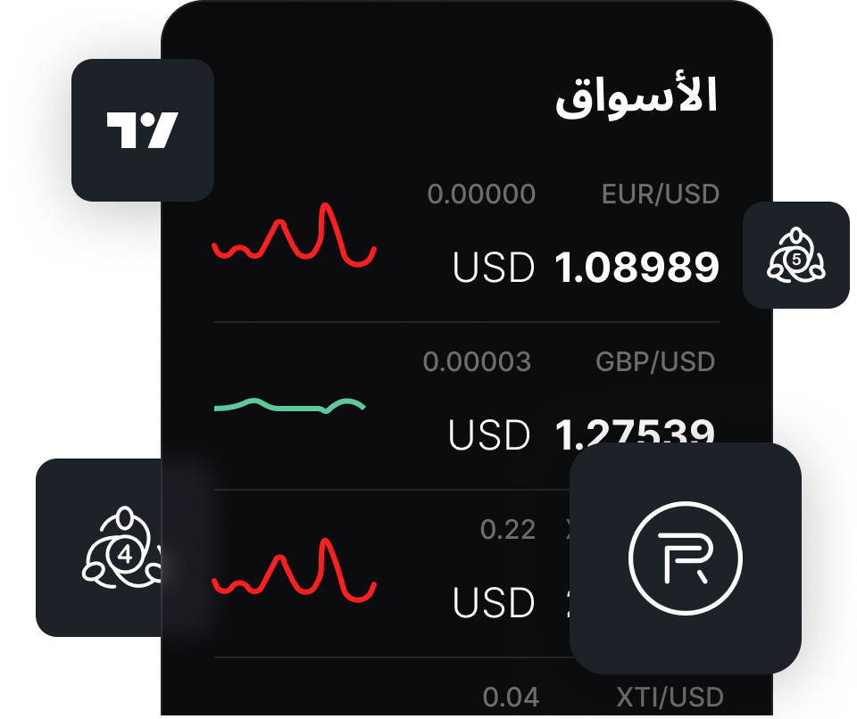 تداول العقود مقابل الفروقات على الفوركس والمؤشرات والنفط والذهب والأسهم من خلال منصات التداول MT4/MT5, TickTrader أو TradingView القابلة للتخصيص بشكل كامل.