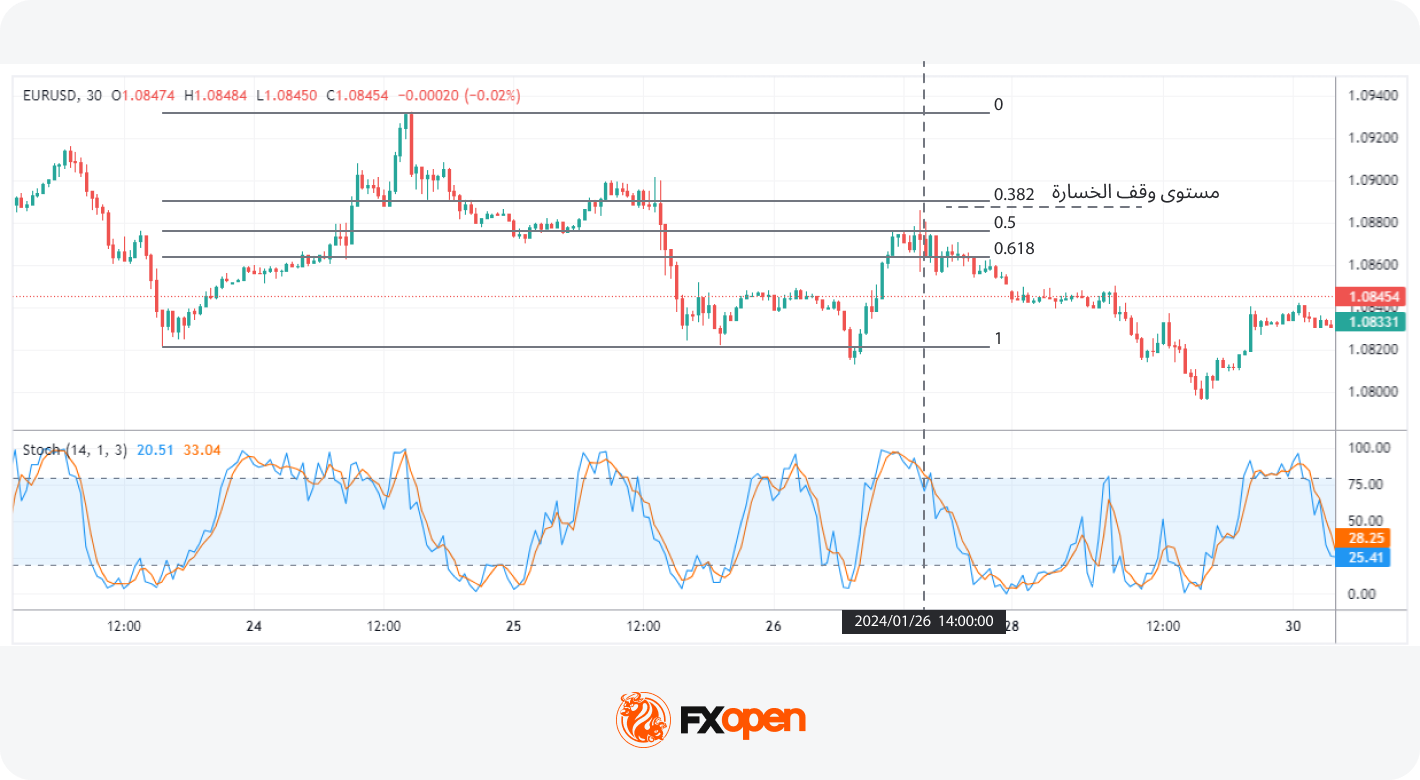 استراتيجية «توليفة مستويات فيبوناتشي ومؤشِّر العشوائية (Stochastic)»