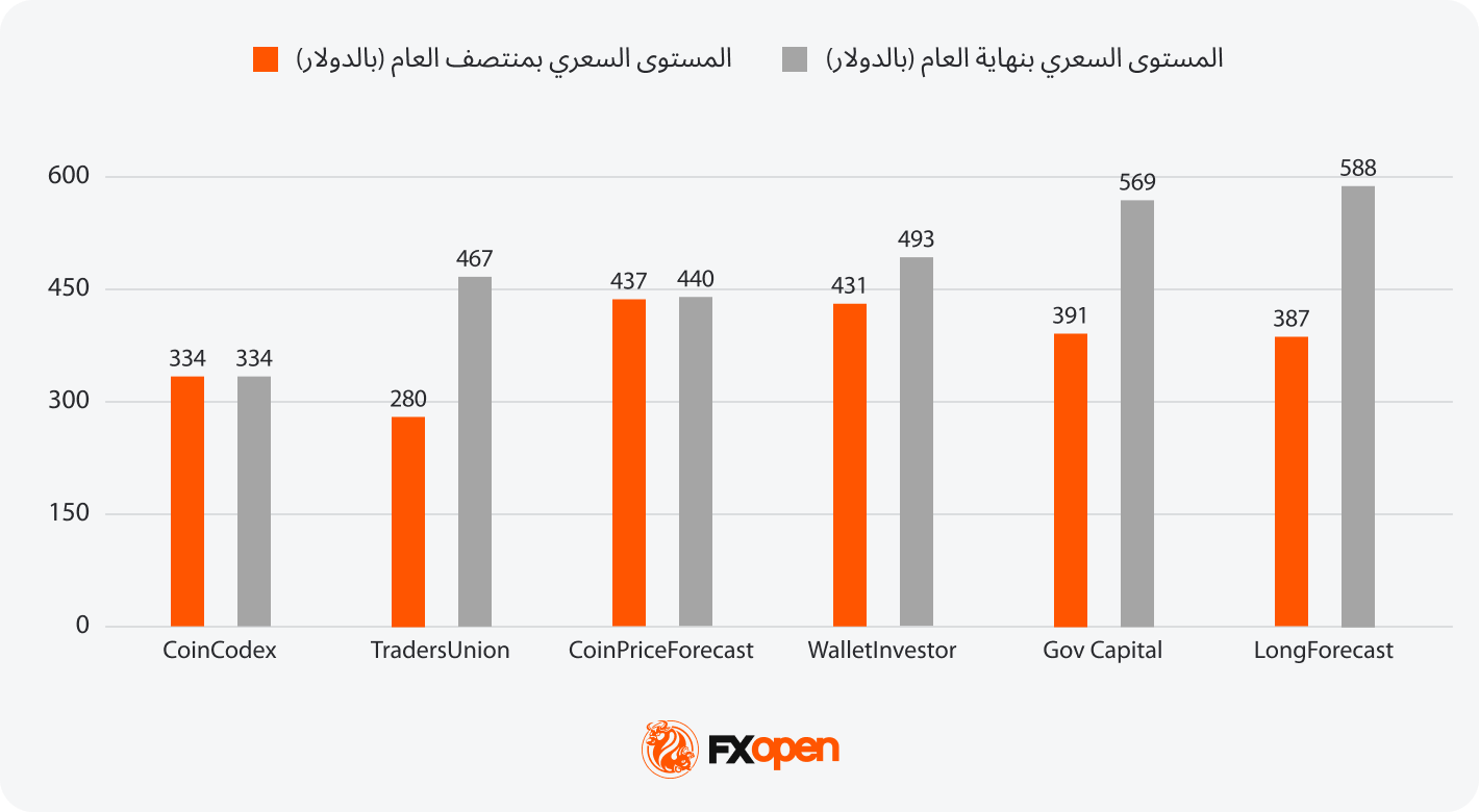 ● أكثر التوقُّعات تفاؤلًا: 588 دولار (وفق منصَّة LongForecast)