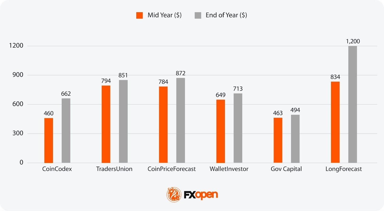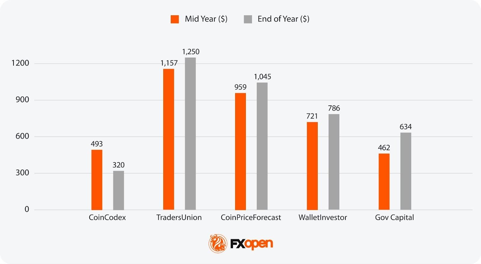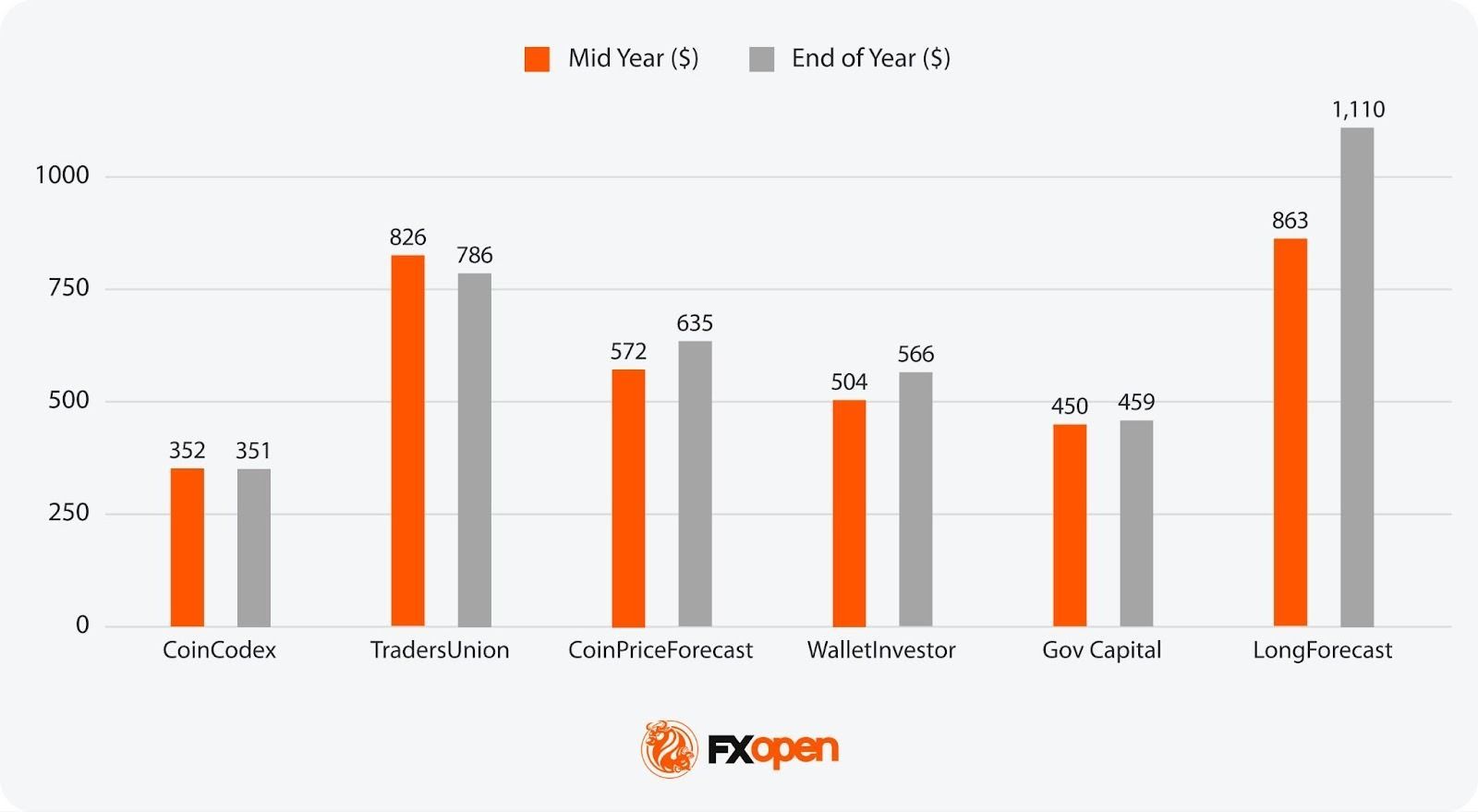 ● أكثر التوقُّعات تفاؤلًا: 1,200 دولار (وفق منصَّة LongForecast)