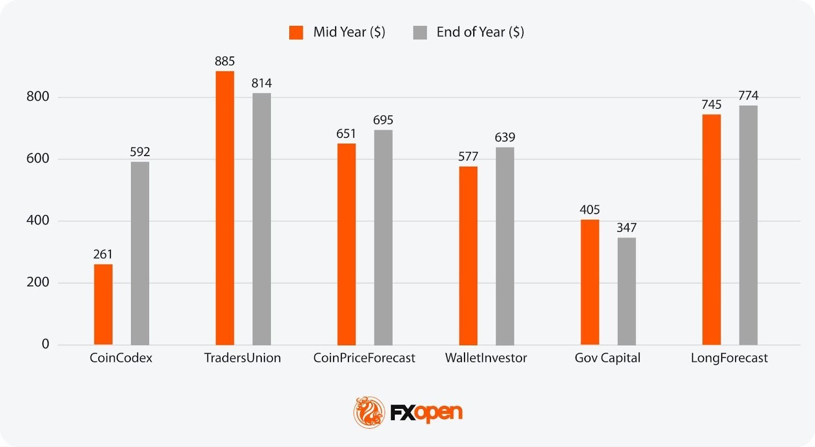 ● أكثر التوقُّعات تفاؤلًا: 885 دولار (وفق منصَّة TradersUnion)