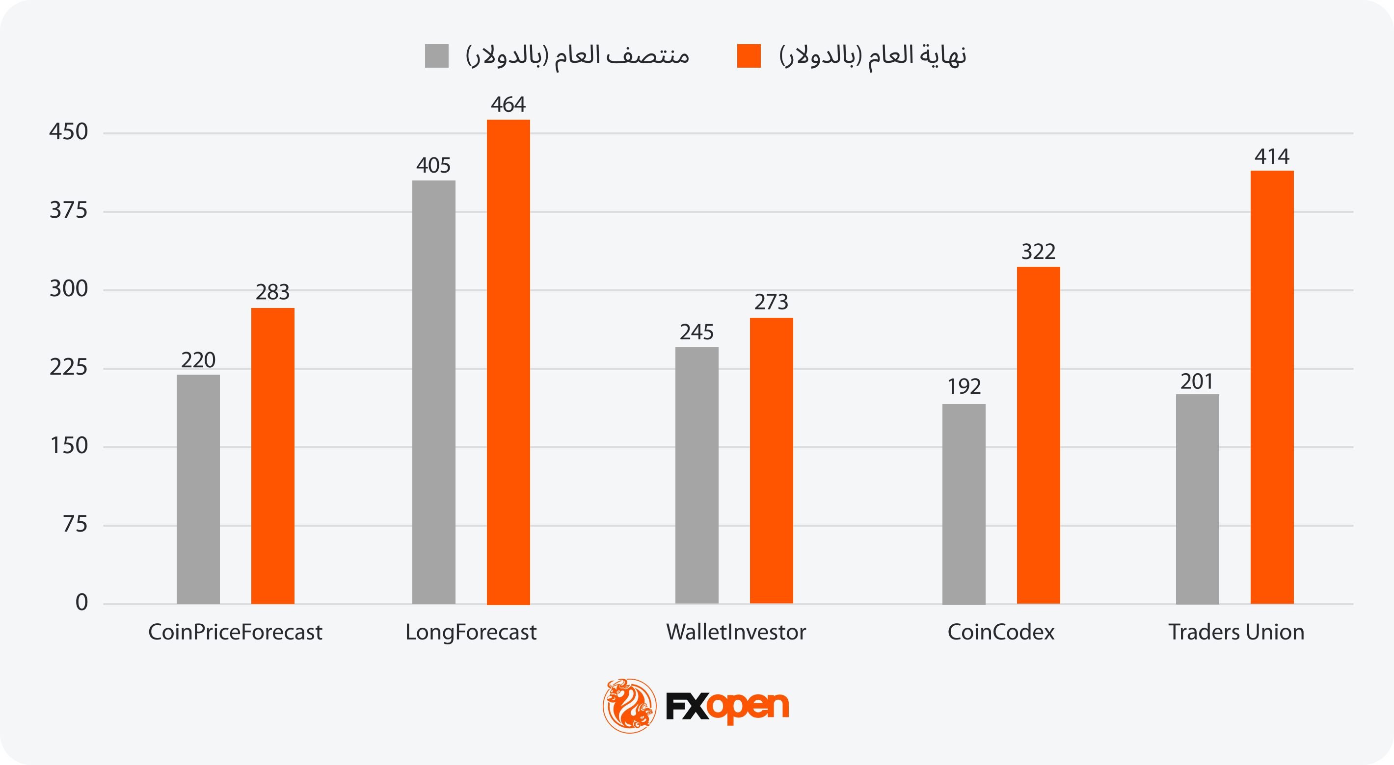 - أكثر التوقُّعات تشاؤمًا: 306 (وفق منصَّة WalletInvestor)