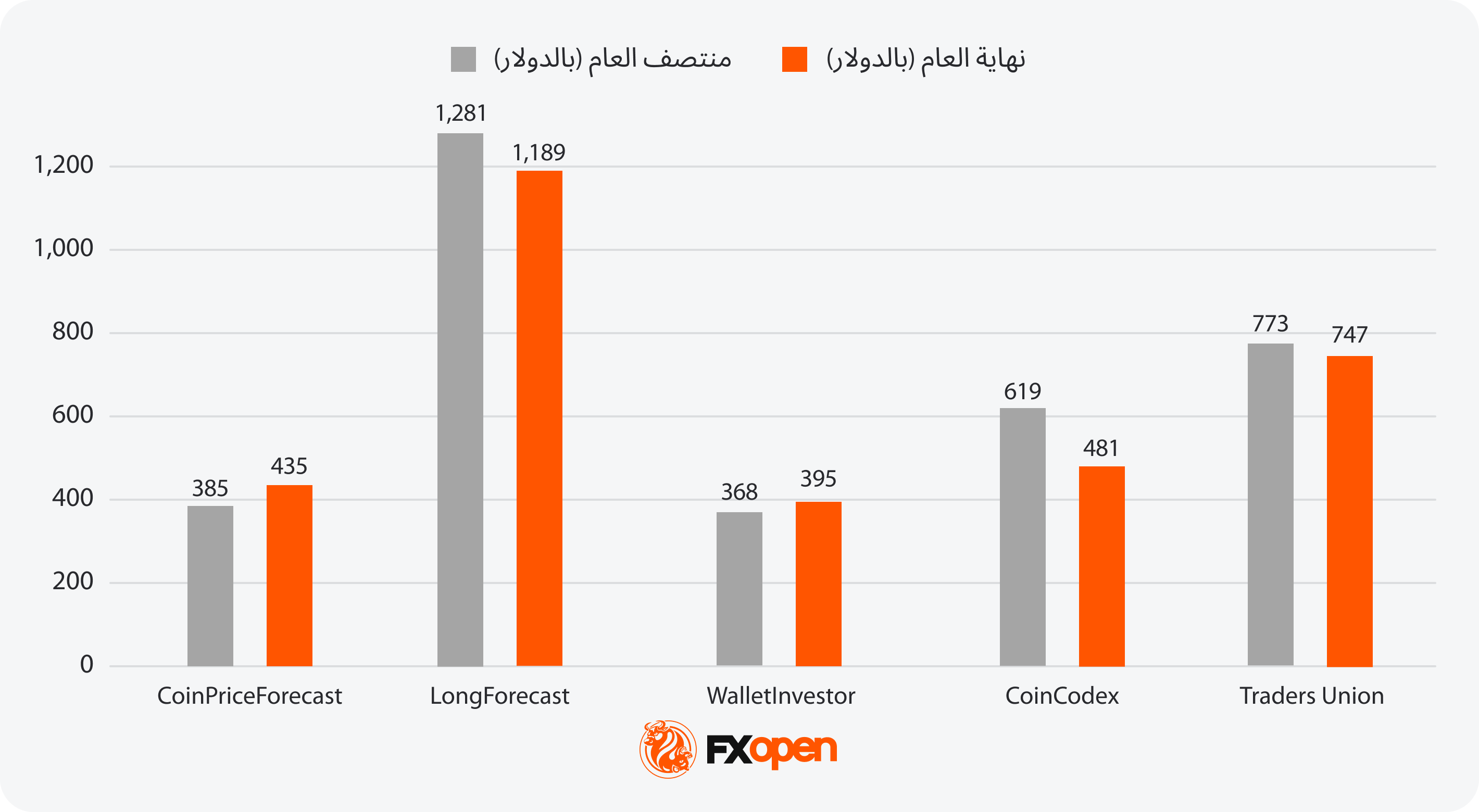 - أكثر التوقُّعات تشاؤمًا: 334 (وفق منصَّة WalletInvestor)