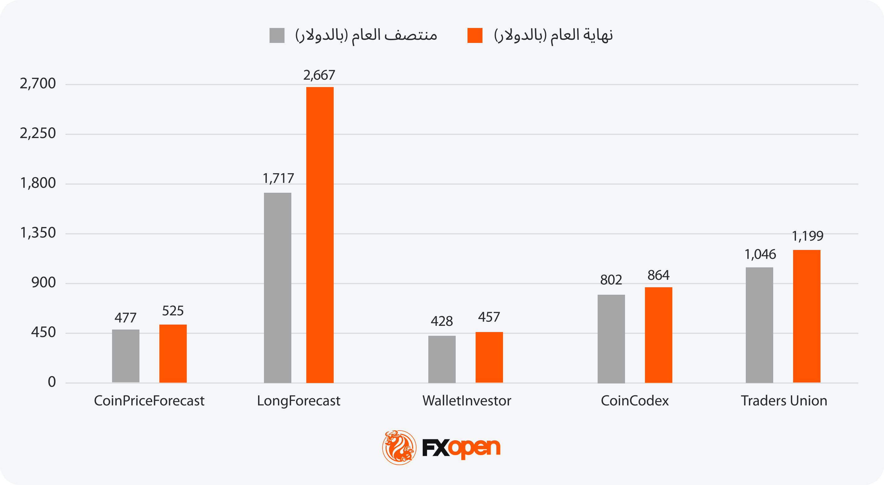 - أكثر التوقُّعات تشاؤمًا: 428 (وفق منصَّة WalletInvestor)
