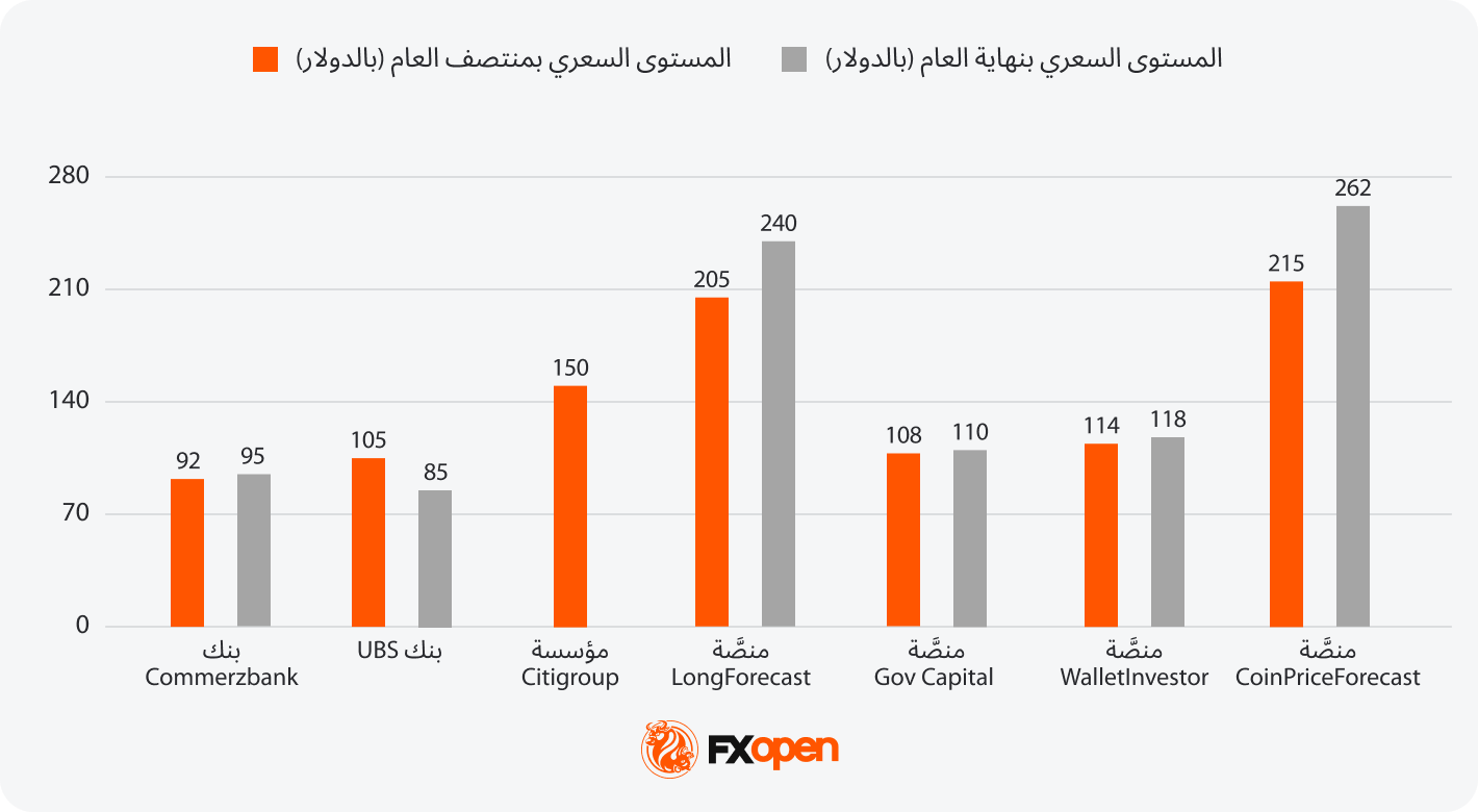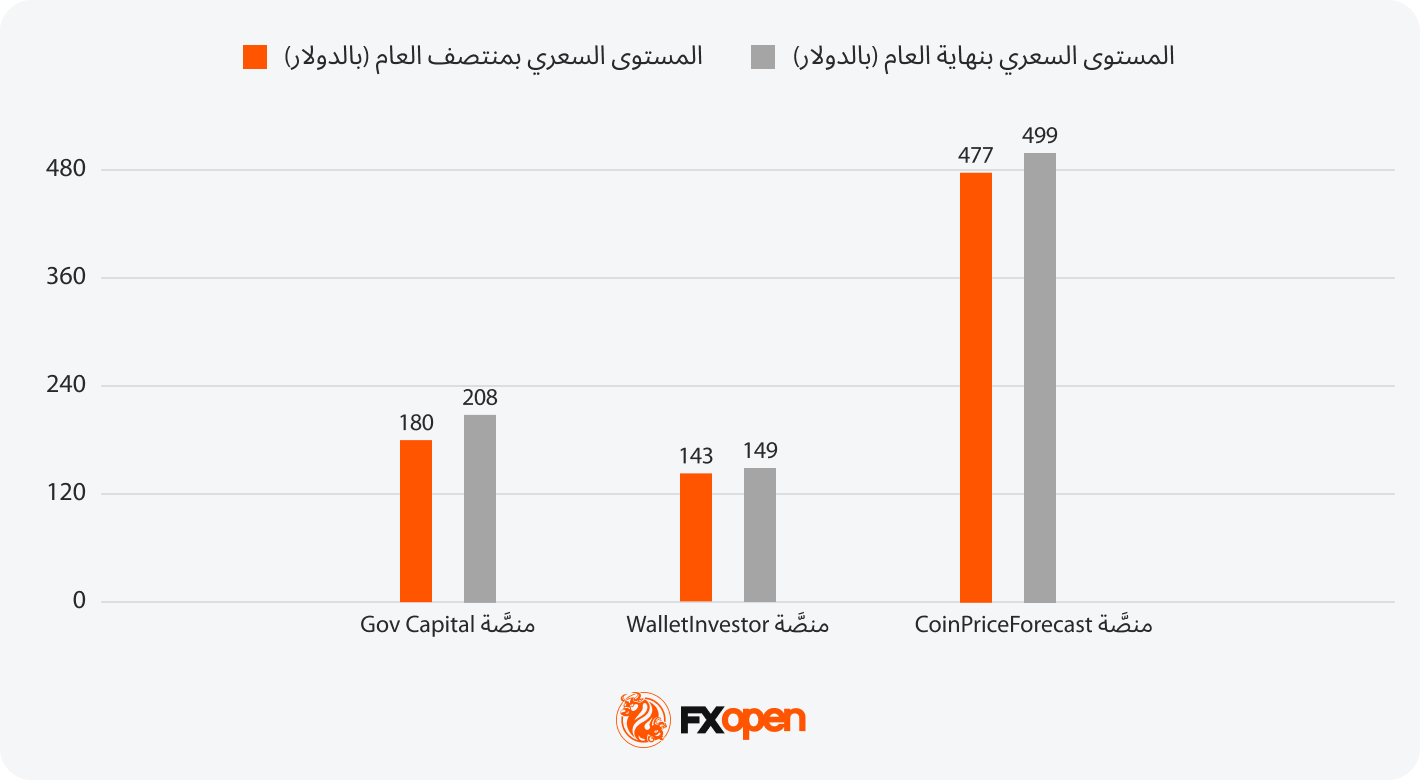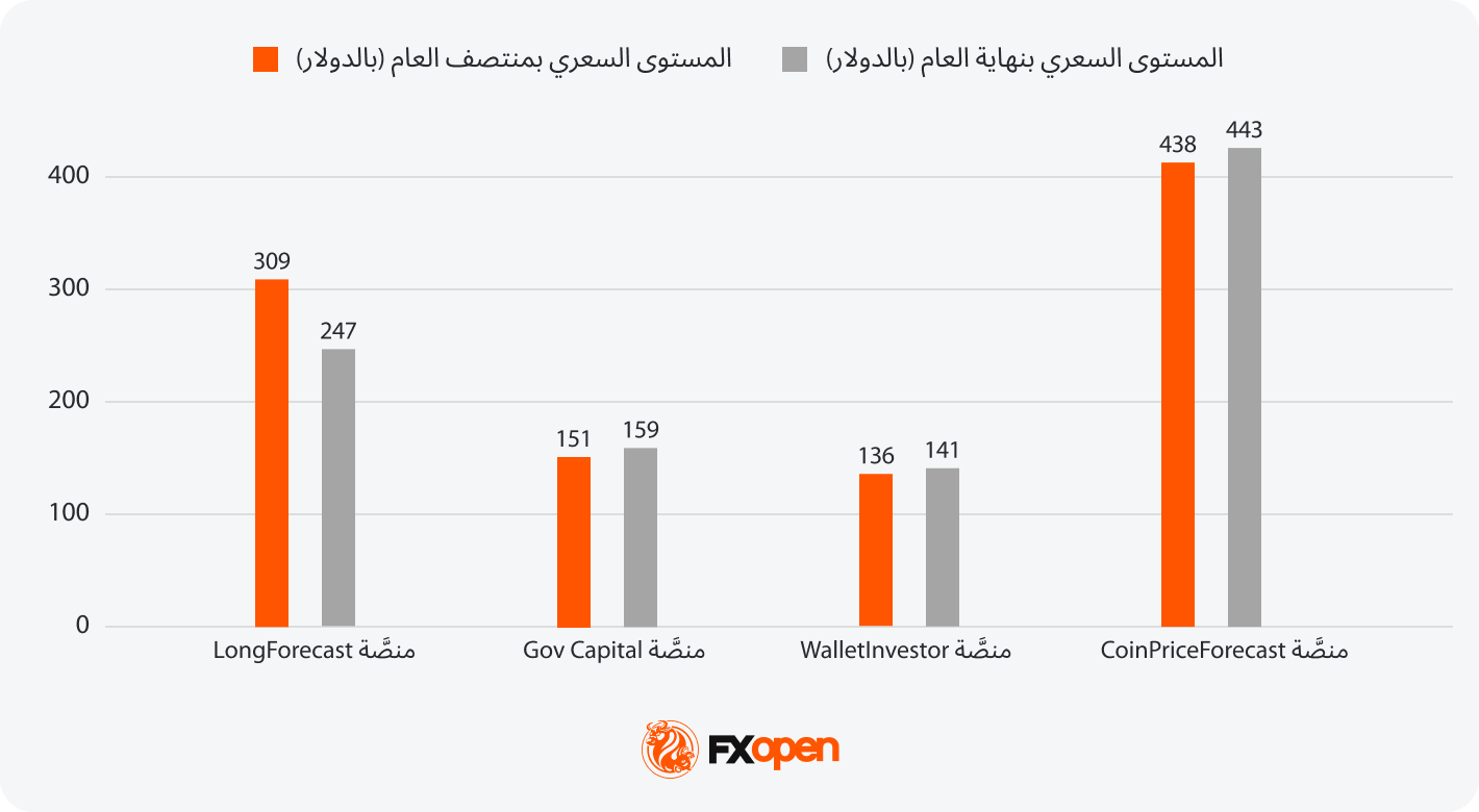 · أكثر التوقُّعات تفاؤلًا لنهاية عام 2030: 499 دولار (وفقًا لمنصَّة CoinPriceForecast)