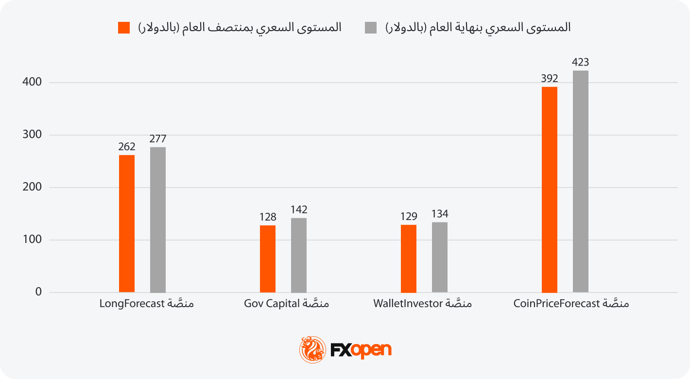 · أكثر التوقُّعات تفاؤلًا لمنتصف عام 2027: 336 دولار (وفقًا لمنصَّة CoinPriceForecast)