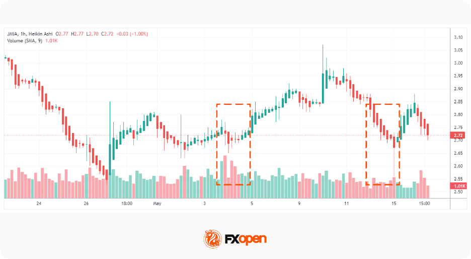 وبالتالي، يُمكنك تحليل مخطَّطات هيكين آشي جنبًا إلى جنب مع مخطَّطات الشموع اليابانية لتأكيد الاتجاهات السائدة في السوق.
