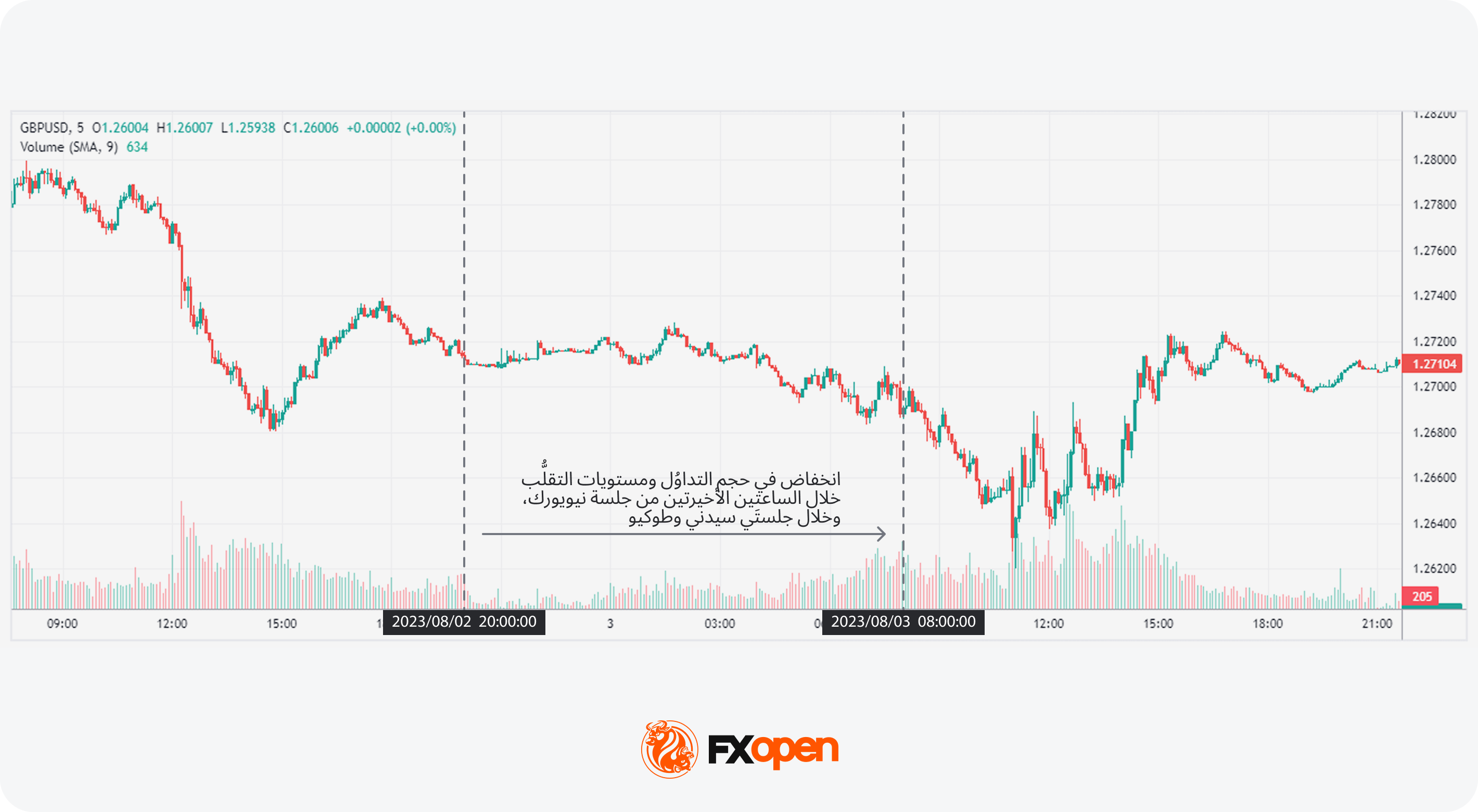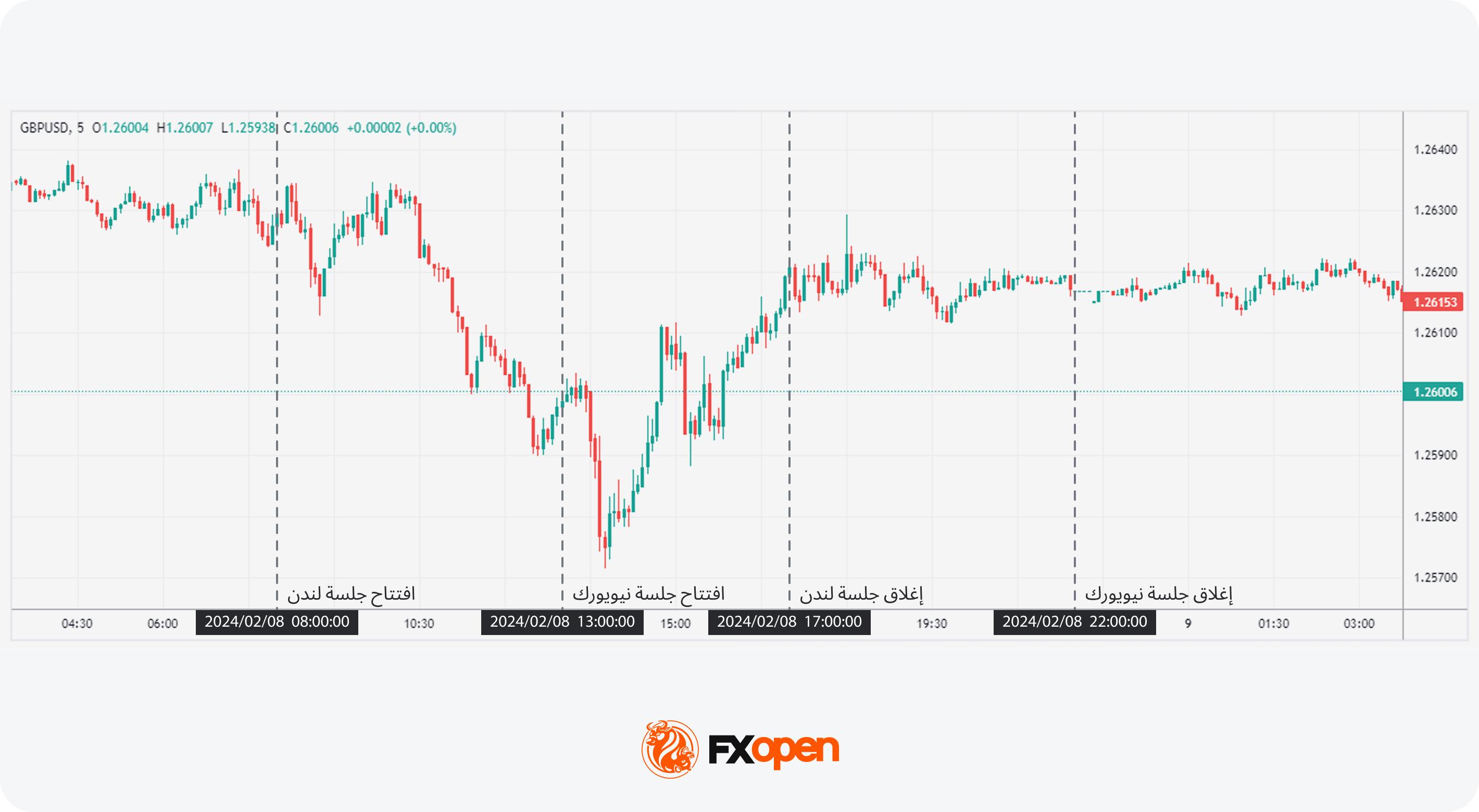 ورغم أنَّ وتيرة التداوُل تميل إلى الهدوء بعد إغلاق جلسة لندن، فإنَّ الساعات الأخيرة من جلسة نيويورك تُتيح فرصًا محتملة للدخول إلى السوق، وإن كانت تتَّسم عادةً بتقلُّباتٍ أدنى وأحجام تداوُل أقل نسبيًا.