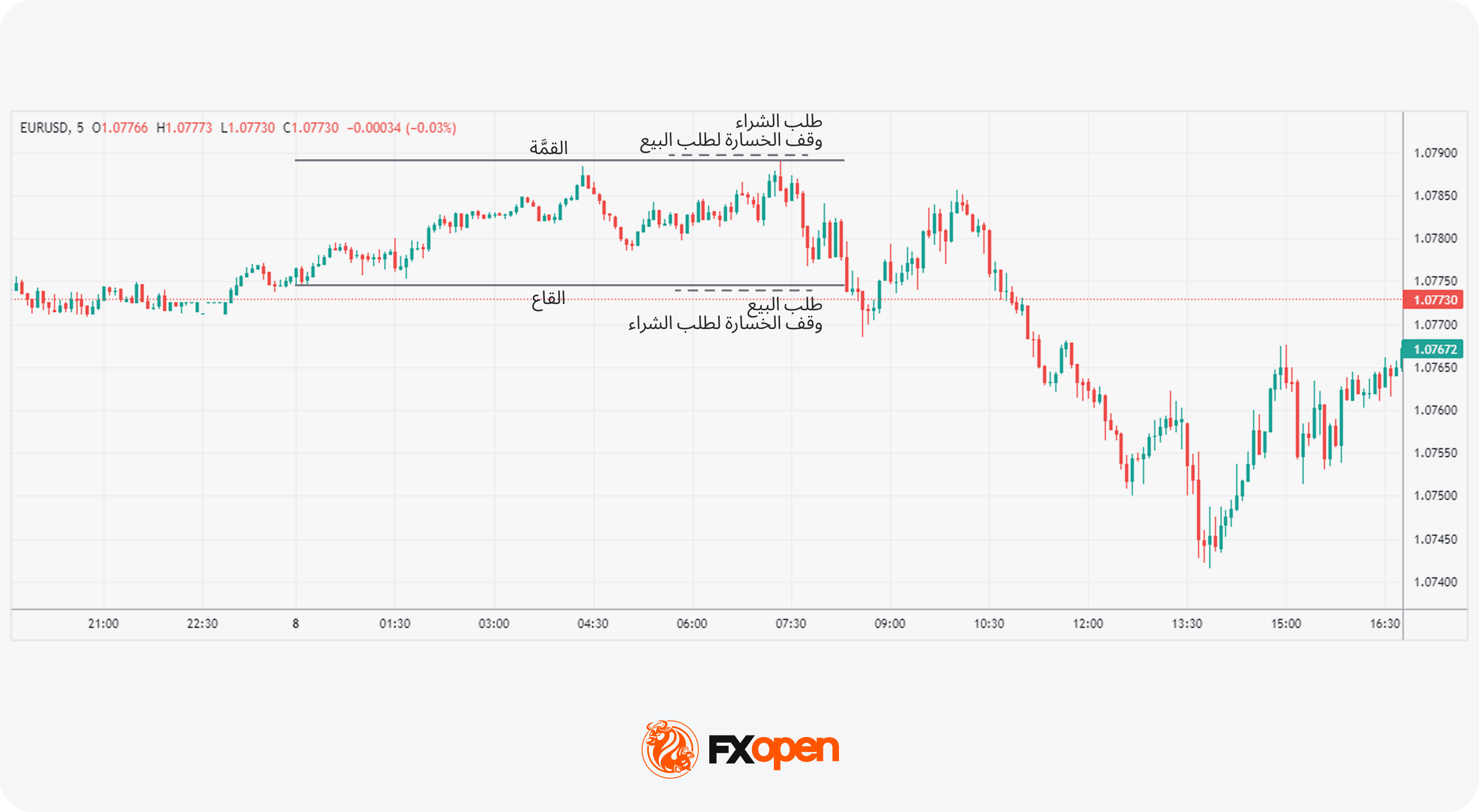 ومع تعيين طلبات وقف الخسارة فوق النطاق أو تحته (أي فوق الحدّ العلوي في حالة الدخول بصفقة بيع بعد كسرٍ هبوطي، أو أسفل الحدّ السفلي في حالة الدخول بصفقة شراء بعد اختراقٍ صعودي، وذلك لحماية الصفقة من أي ارتدادٍ معاكس للسعر بعد الاختراق)، واتباع نهجٍ مدروس لجني الأرباح - سواء عند نهاية جلسة لندن (لأنَّ النشاط والسيولة يبدآن عادةً بالانخفاض بعدها، ما يقلّل احتمالية استمرار الزخم)، أو من خلال تحريك طلب وقف الخسارة تدريجيًا خلال اليوم (وفقًا لتقدُّم السعر في الاتجاه المرغوب للحفاظ على الأرباح المحققة وتقليل المخاطر في حال انعكاس السوق) - يمكن للمتداولين الاستفادة من موجة النشاط القوية التي ترافق افتتاح الجلسة. وللتعمّق أكثر في هذه الاستراتيجية وغيرها من أساليب التداوُل القائمة على الجلسات، يُمكنك الاطِّلاع على مقال FXOpen حول نظام التداوُل القائم على الجلسات الثلاث.