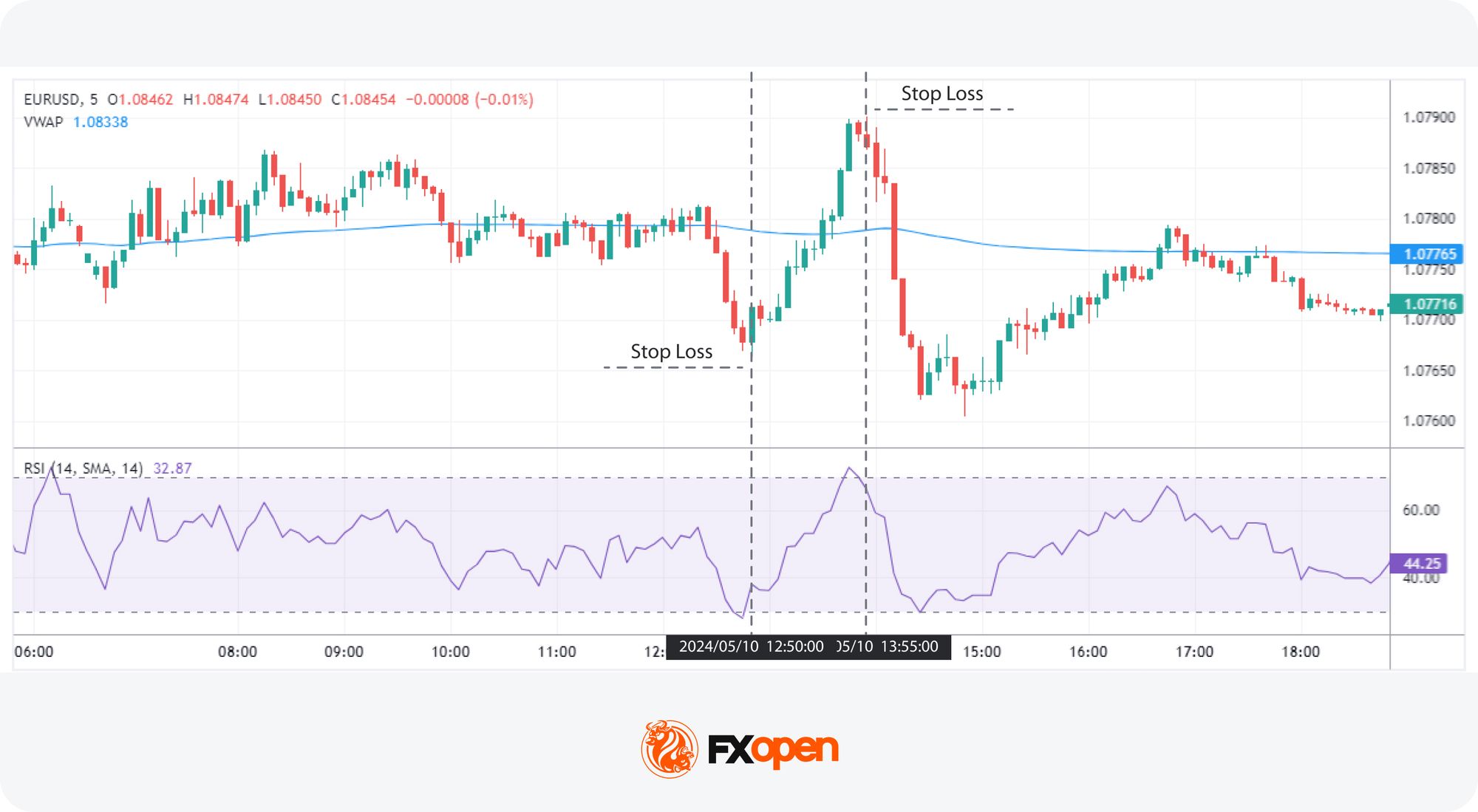 The VWAP and RSI trading method leverages mean reversion, which assumes that prices will revert to their mean value over time. This strategy combines VWAP’s price-volume insight with RSI’s momentum analysis, providing a clear picture of potential price reversals. According to theory, it’s usually used on intraday charts, typically the 5m or 15m, given the VWAP resets between trading days.
