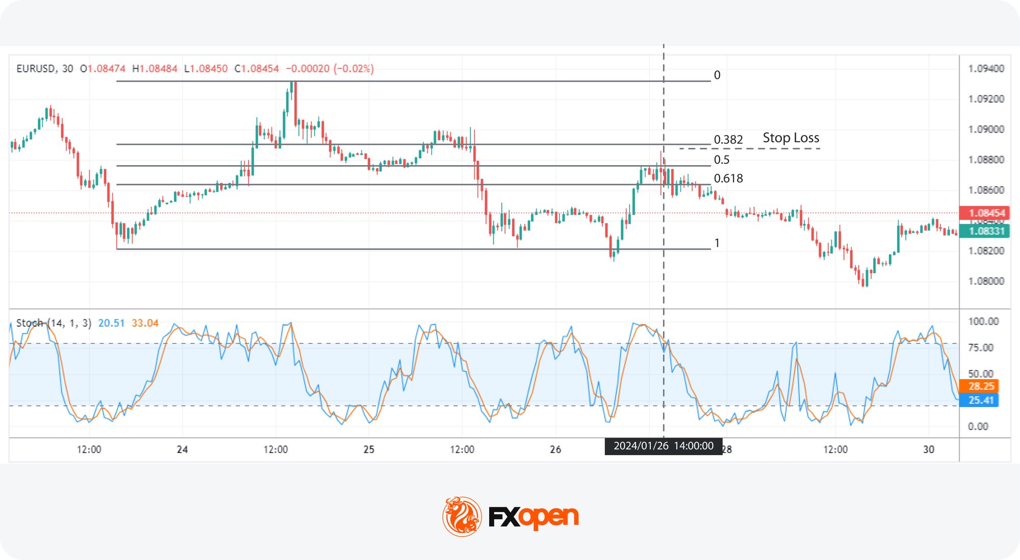 The Fibonacci and Stochastic strategy combines Fibonacci retracement levels with the Stochastic Oscillator to identify potential price reversals in trending markets. This approach leverages key retracement levels and momentum signals, offering traders a method for timing entries and exits.