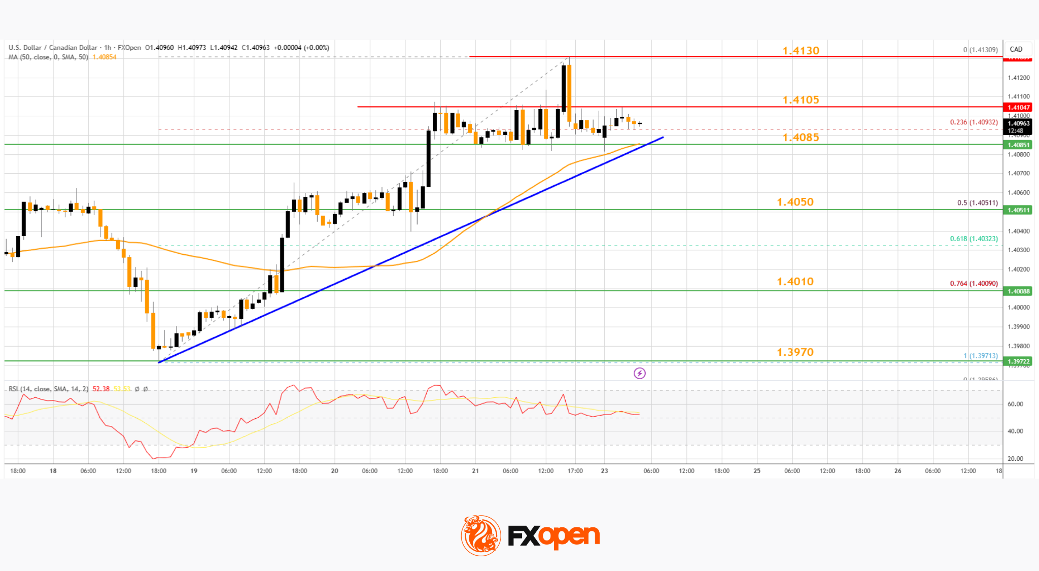 On the hourly chart of USD/CAD at FXOpen, the pair formed a strong support base above the 1.3970 level. The US Dollar started a fresh increase above 1.4000 against the Canadian Dollar.