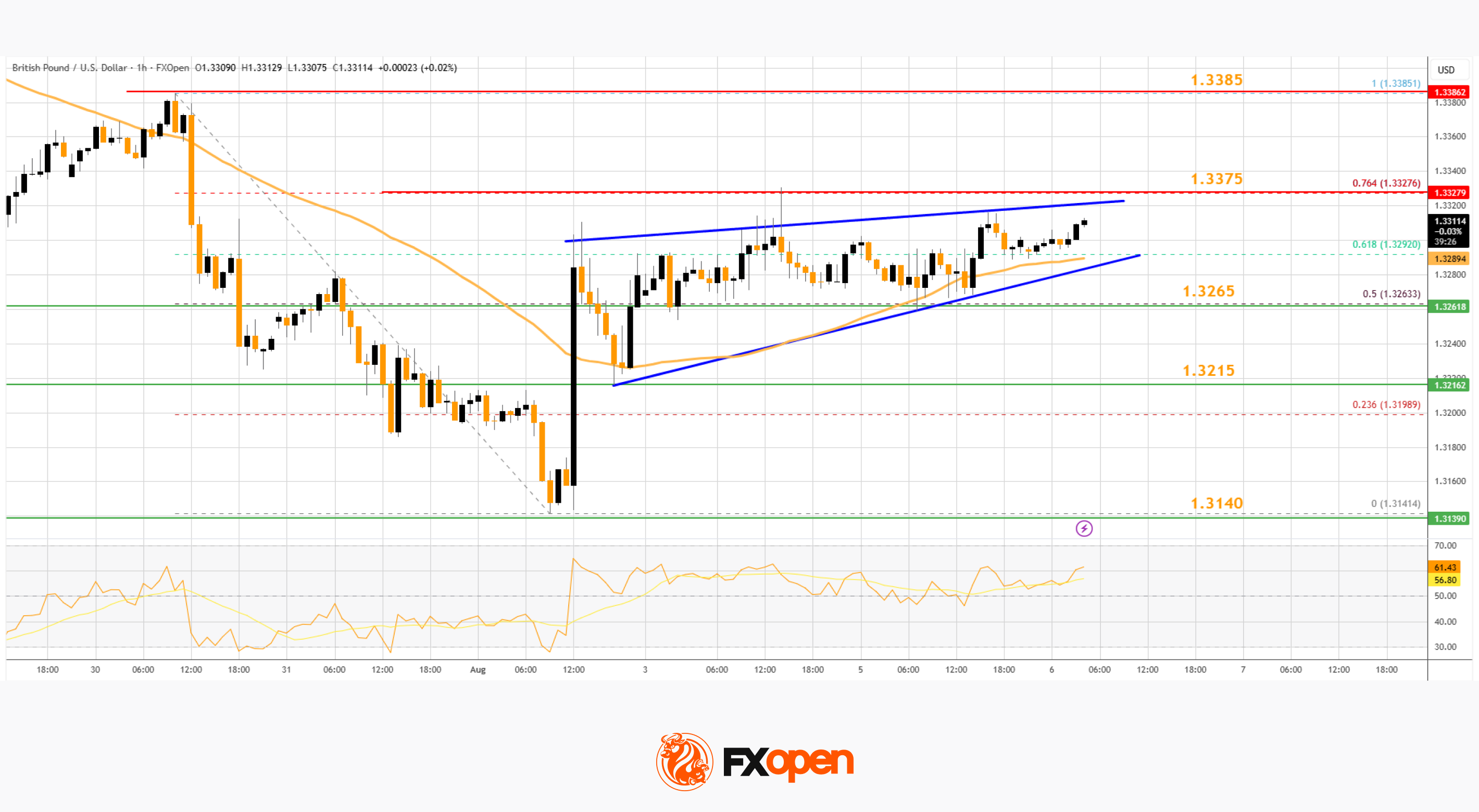 - There is a contracting triangle forming with resistance at 1.3375 on the hourly chart of GBP/USD at FXOpen.