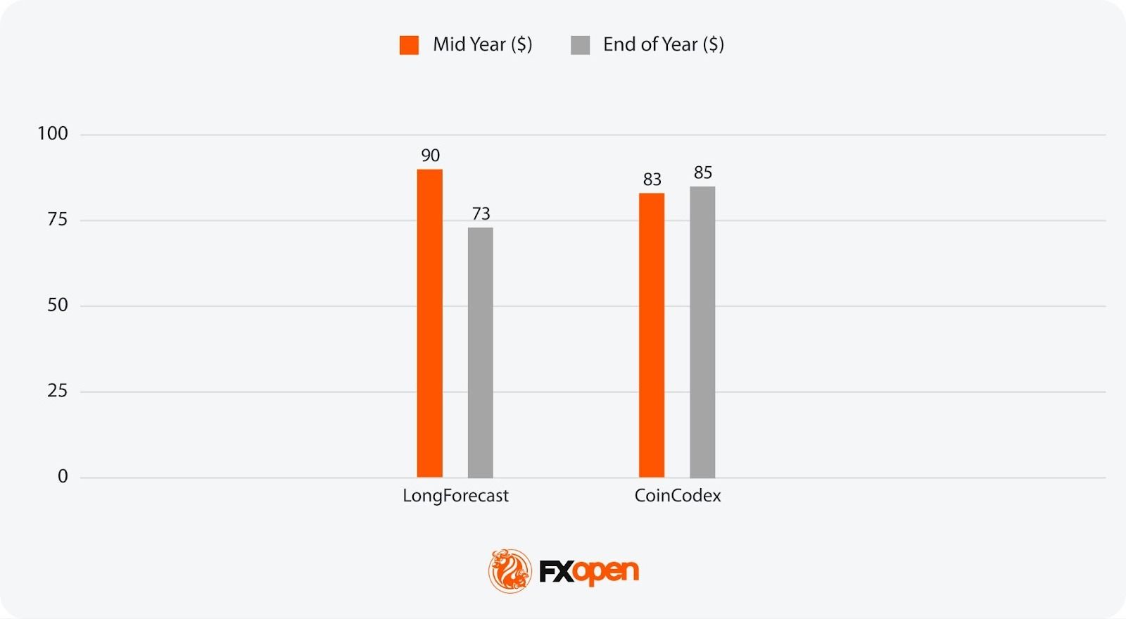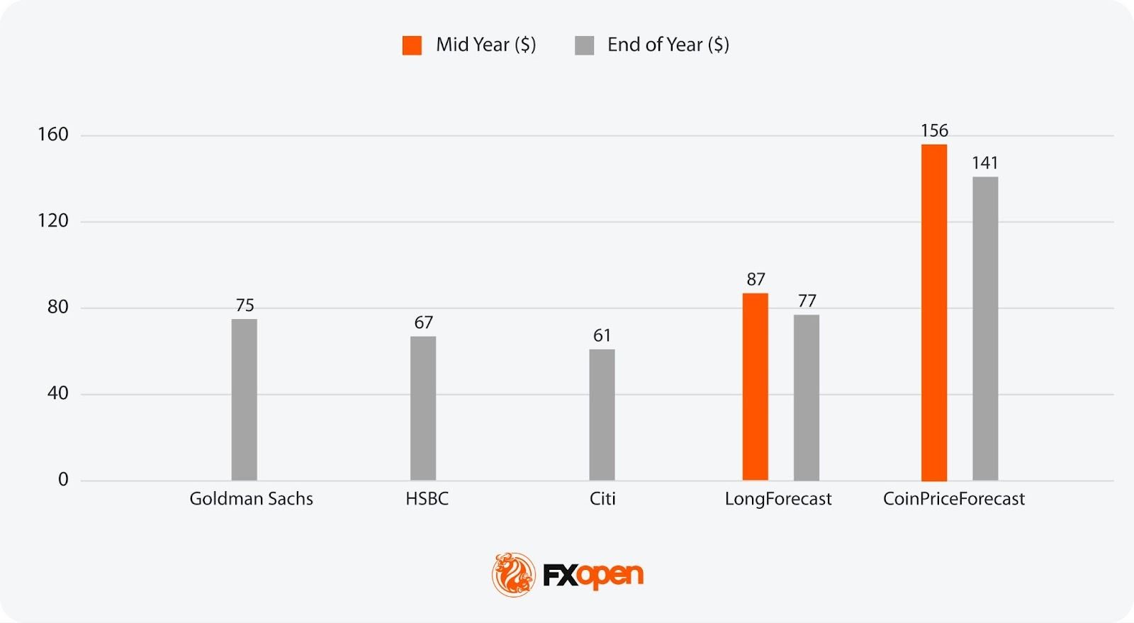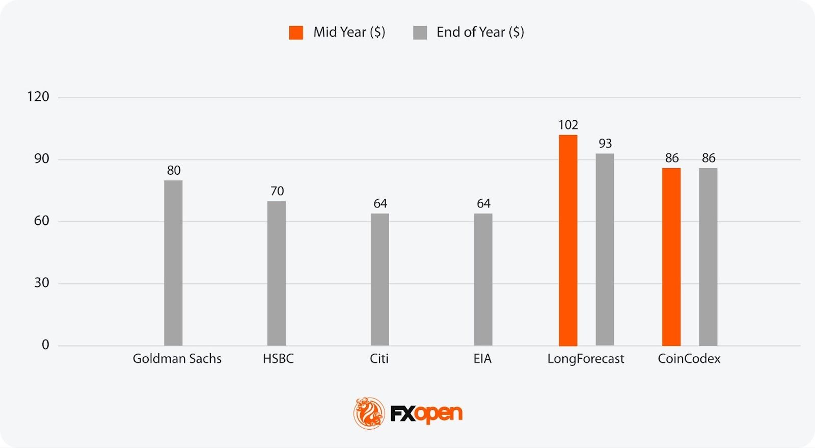 Long-range projections remain deeply divided. CoinCodex places Brent around $100 per barrel by 2030, while CoinPriceForecast puts its WTI oil price forecast near $140. The gap reflects uncertainty over energy transition speed and investment levels.