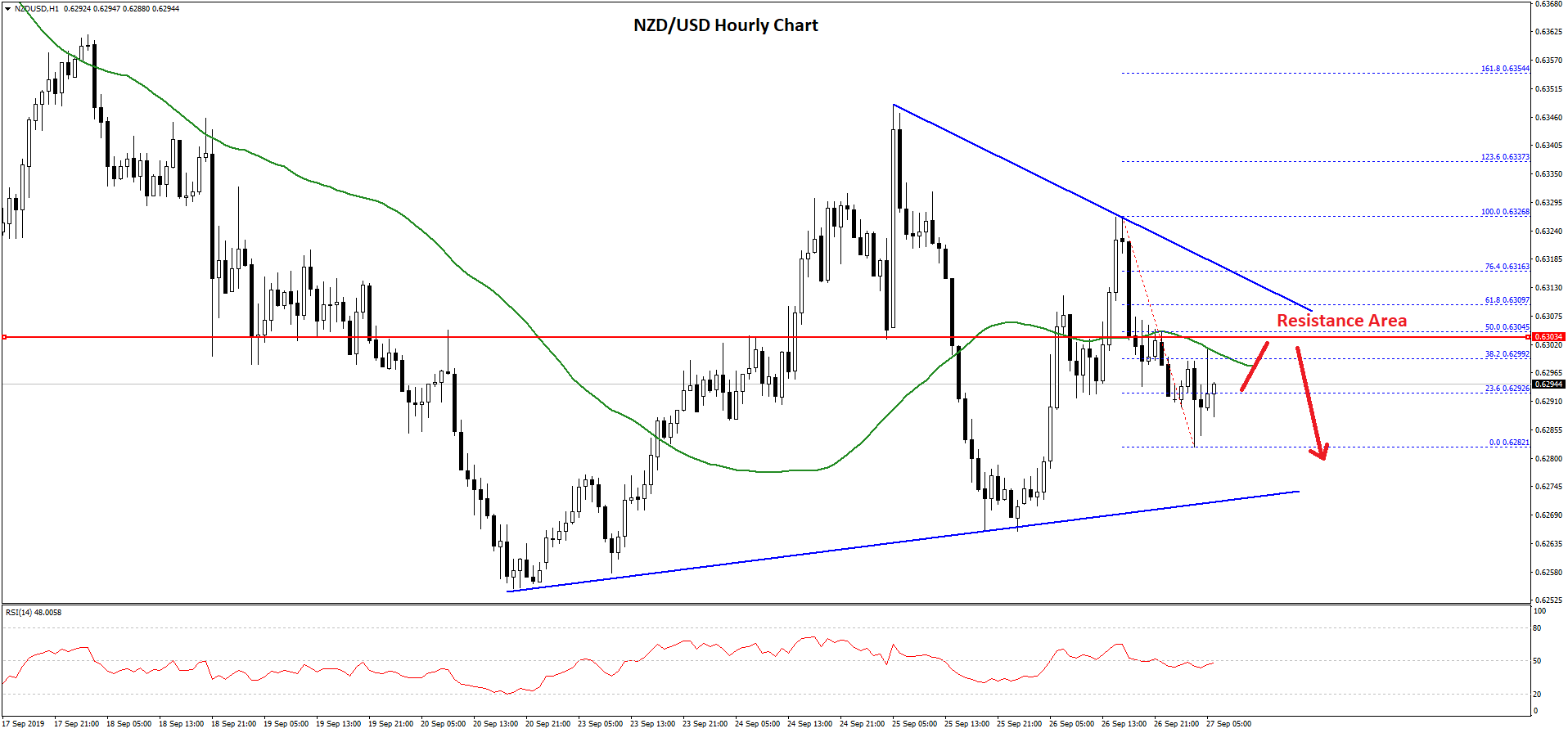 - NZD/USD is facing a strong resistance near the 0.6300 and 0.6320 levels.