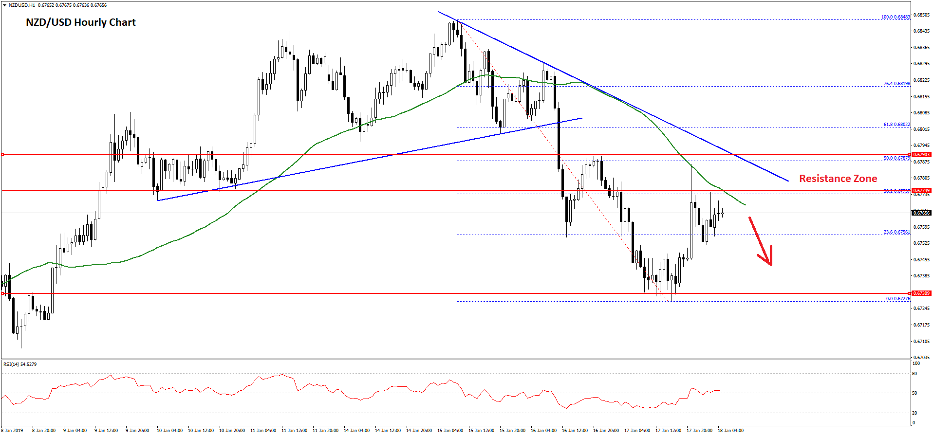 However, the pair struggled to gain momentum above the 0.6780 level and the 50 hourly simple moving average. Moreover, there is a crucial bearish trend line with resistance near 0.6780 on the hourly chart.