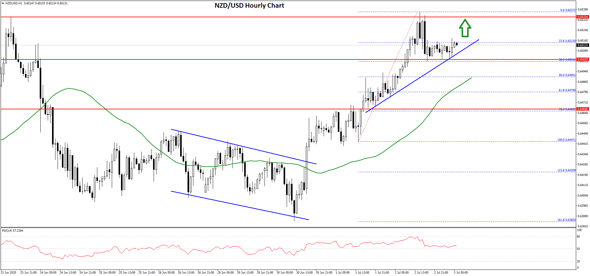 - NZD/USD climbed higher nicely above the 0.6480 and 0.6500 resistance levels.