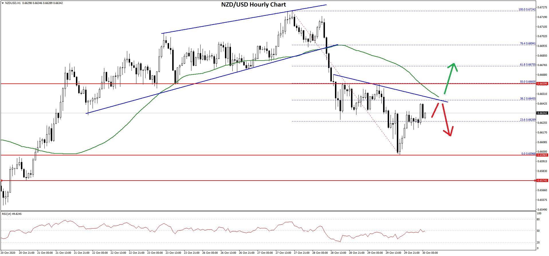 - NZD/USD also started a decent recovery wave from the 0.6596 low.