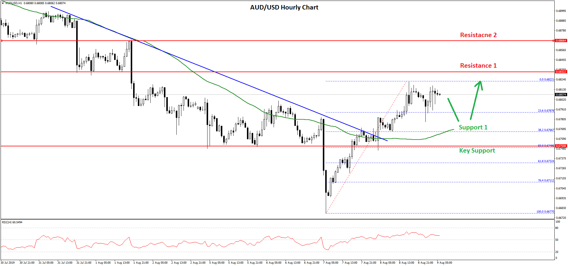 Besides, there was a break above a crucial bearish trend line with resistance near 0.6760 on the hourly chart of AUD/USD. It opened the doors for more gains above the 0.6800 resistance.