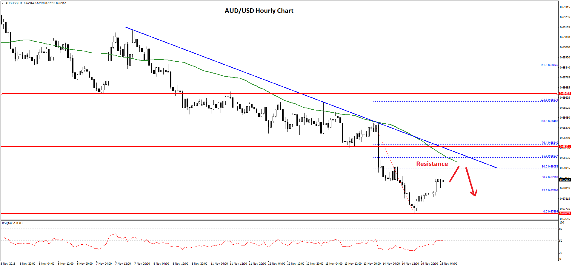 In the past few days, there was a steady decline in the Aussie Dollar from well above the 0.6850 support against the US Dollar. The AUD/USD pair broke a couple of important hurdles near 0.6820 to start a downtrend.