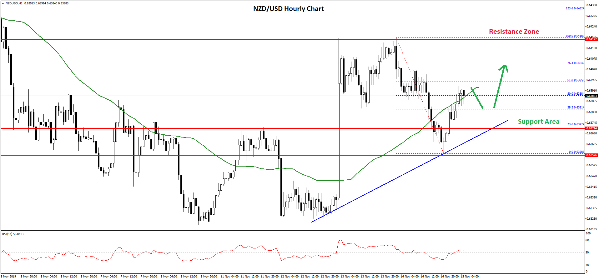 A low was formed near the 0.6358 level and the pair is currently climbing higher. It broke the 0.6380 resistance area and the 50 hourly simple moving average.