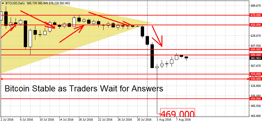 Bitcoin prices have somewhat stabilized around the $580 handle. Market participants are still waiting for more info from the hacked exchange Bitfinex before making up their minds. The technical bias, however, remains the same with both Bitcoin and Litecoin in a downtrend.