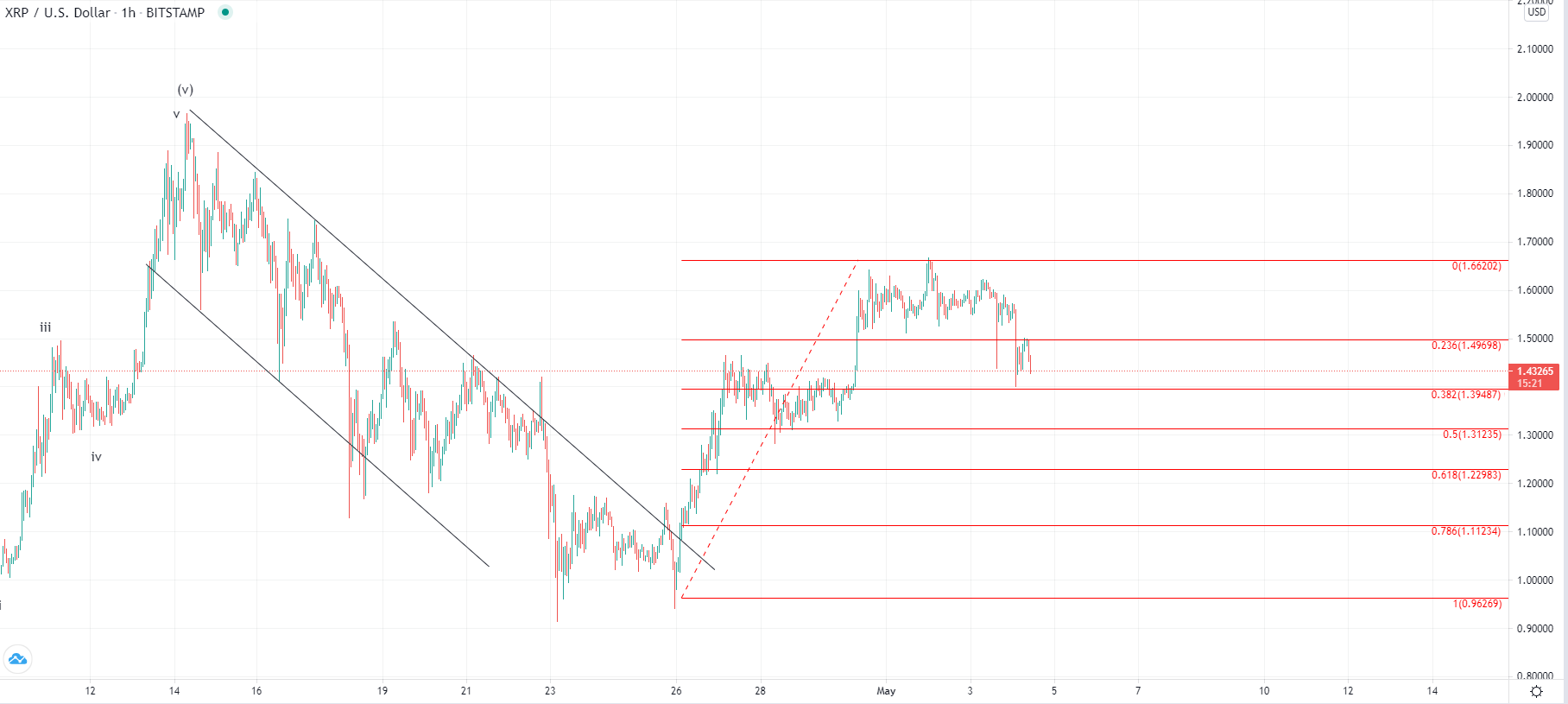 Ripple has been on the rise since the 26th as well and made an increase of 73.6%, coming from $0.9519 to $1.662 at its highest point on Sunday. From there we have started seeing a retecement and the price is currently sitting at $1.432.