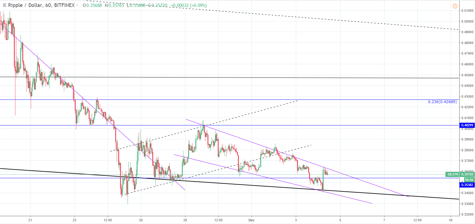 But if the price starts increasing from here, I wouldn’t expect it to go more than the mentioned horizontal resistance level at $0.4029 at one go.