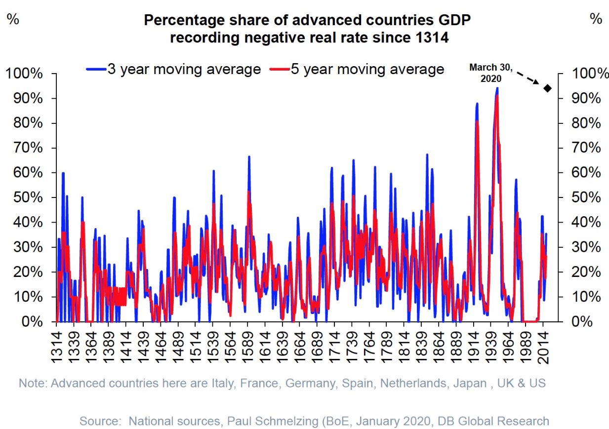Negative interest rates have long failed to impress markets anymore, but the Fed kept saying they are not an option in the United States. Given the unprecedented scale of the current crisis and the percentage share of advanced countries GDP recording negative real rates, any hint that the Fed might follow the same path should not be that surprising.