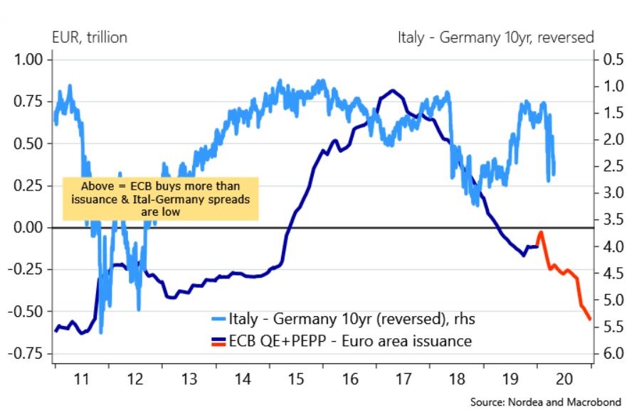 On Thursday, the ECB might announce an increase in its bond-buying program to the relief of spread markets. Compared to the Fed, the ECB is not buying it all, as the Fed does, so it should come as no surprise if it announces a step-up of its bond-buying program.