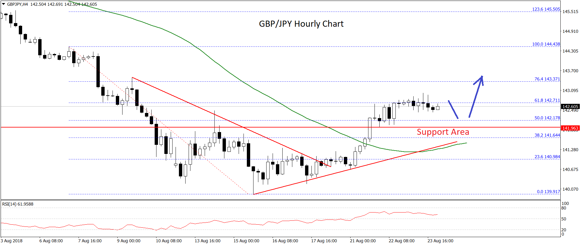 - GBP/JPY moved above the 141.80 and 142.00 resistances, which is a positive sign.