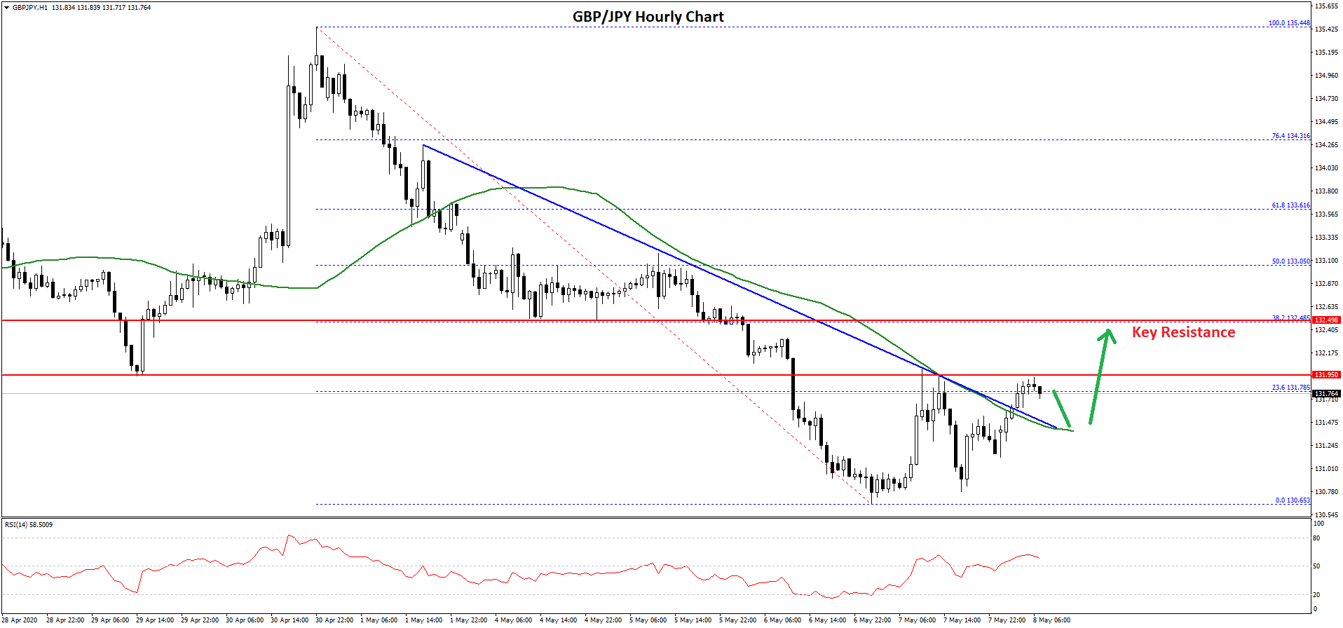 There was a break above the 131.40 level and the 50 hourly simple moving average. Besides, there was a break above a key bearish trend line with resistance near 131.60 on the hourly chart.