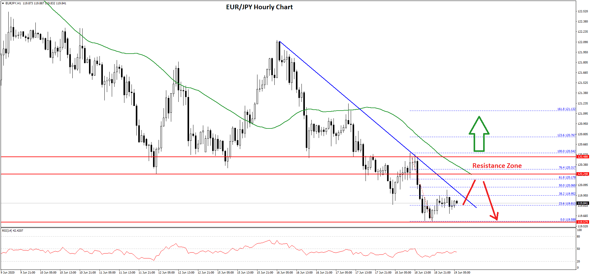 After facing hurdles near the 122.40 and 122.50 levels, the Euro started a steady decline against the Japanese Yen. The EUR/JPY pair broke many major supports near 121.00 and 120.80 to enter a bearish zone.