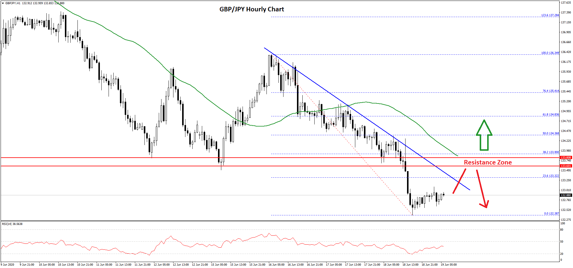 If not, the pair is likely to resume its decline from 133.25 or 133.40. An initial support is near the 132.40 level, below which there is a risk of more downsides in GBP/JPY below 132.00 and 131.50.