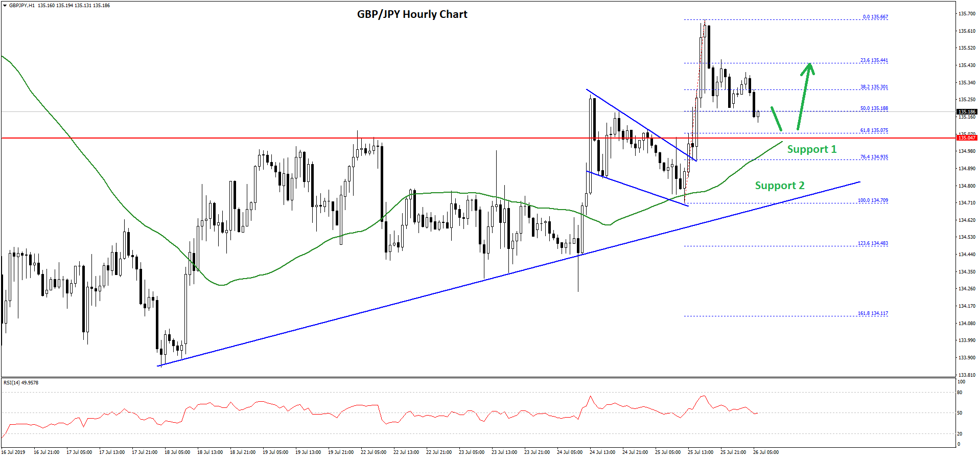 The pair climbed above the 135.00 resistance and the 50 hourly simple moving average. Finally, there was a break above the 135.50 level and the pair traded close to the 135.70 level.