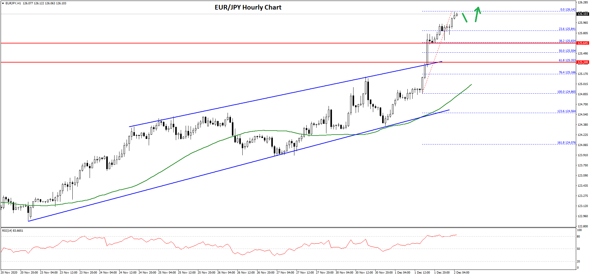 There was also a close above the 125.20 level and the 50 hourly simple moving average. Moreover, there was a break above a major rising channel with resistance near 125.30 on the hourly chart.