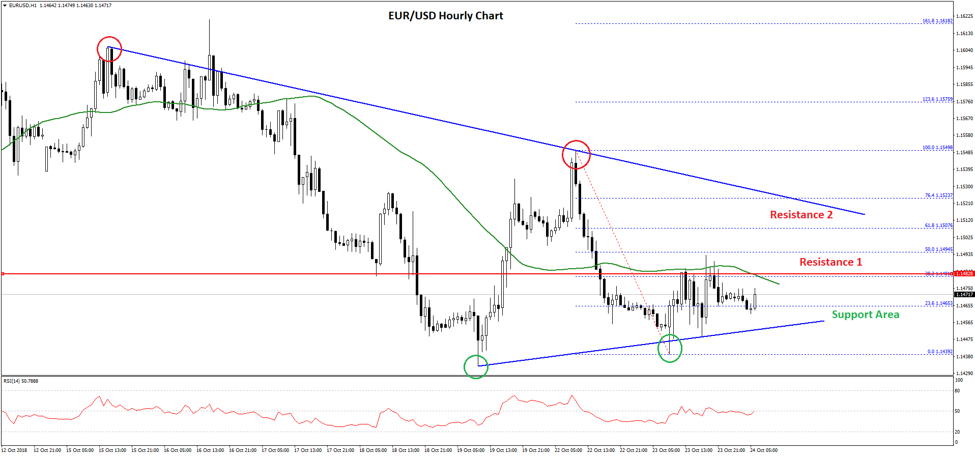 Above 1.1480, the next resistance is near 1.1500 and the 50% Fib retracement level of the last decline from the 1.1550 high to 1.1439 low. Moreover, there is a major bearish trend line in place with resistance at 1.1515 on the hourly chart of EUR/USD.