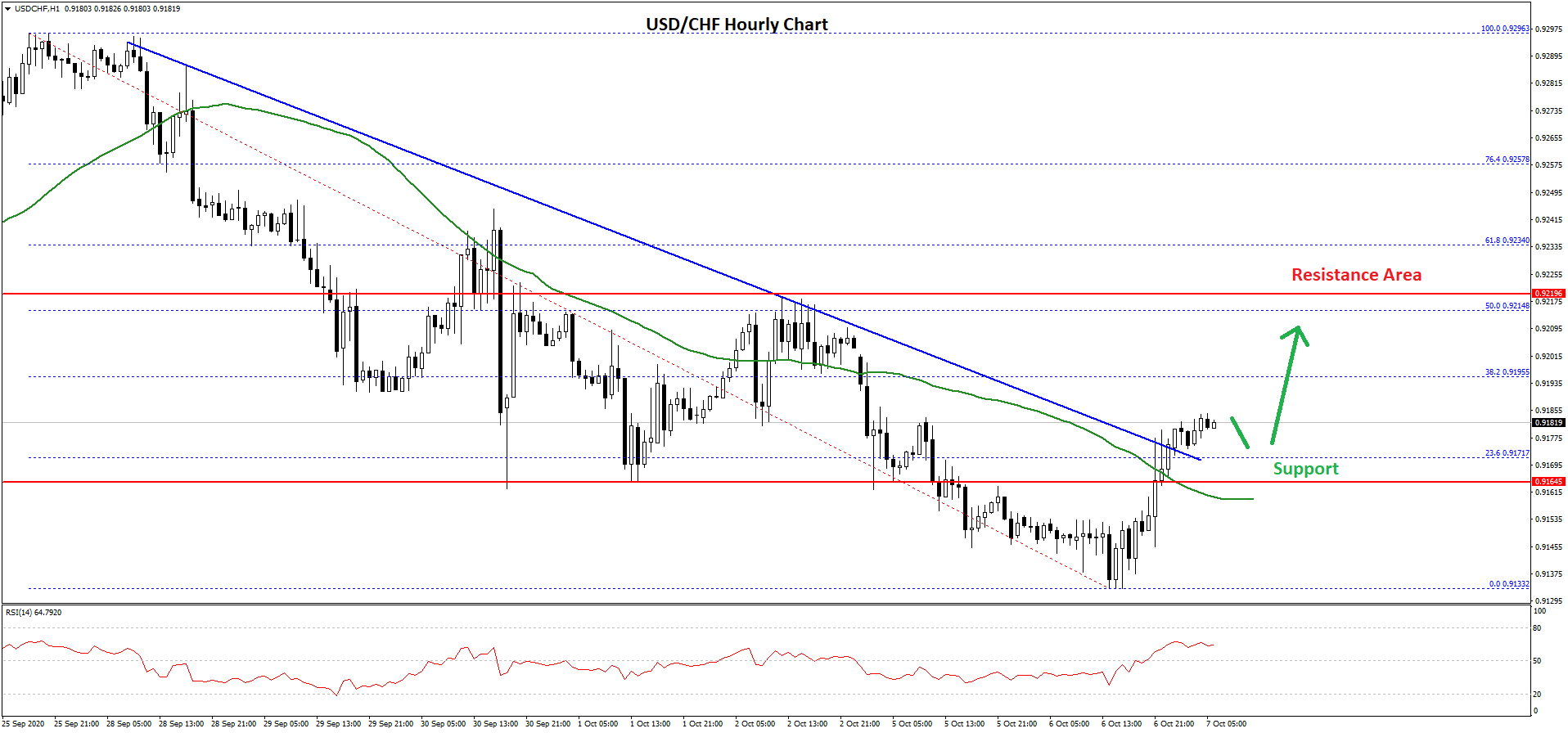 After a steady decline, the US Dollar found support near the 0.9130 area against the Swiss franc. The USD/CHF pair traded as low as 0.9133 and recently started a fresh upward move.