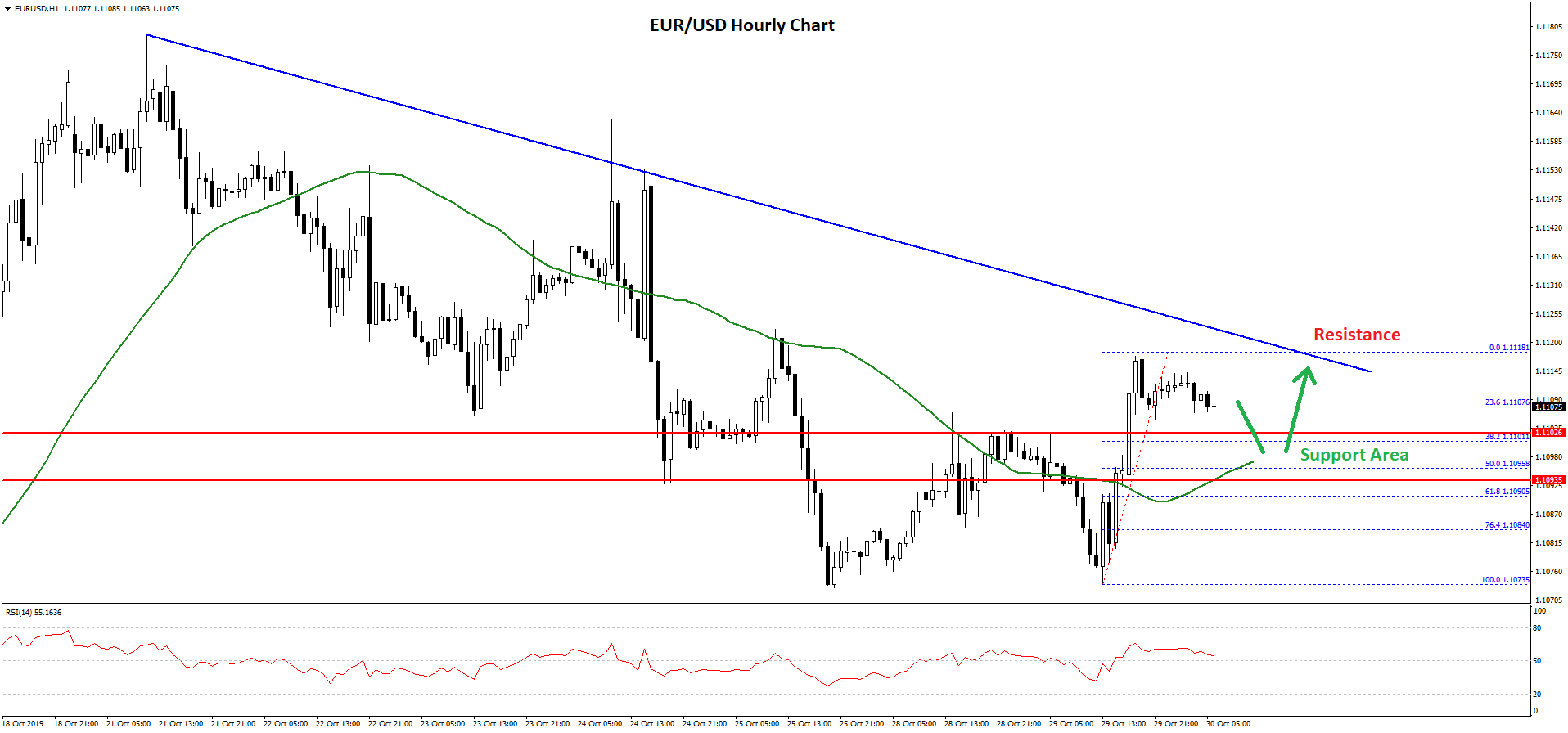 If there is a downside break below the 1.1090 level, the pair could decline back towards the 1.1075 support area. Any further losses could lead EUR/USD towards the 1.1050 level.