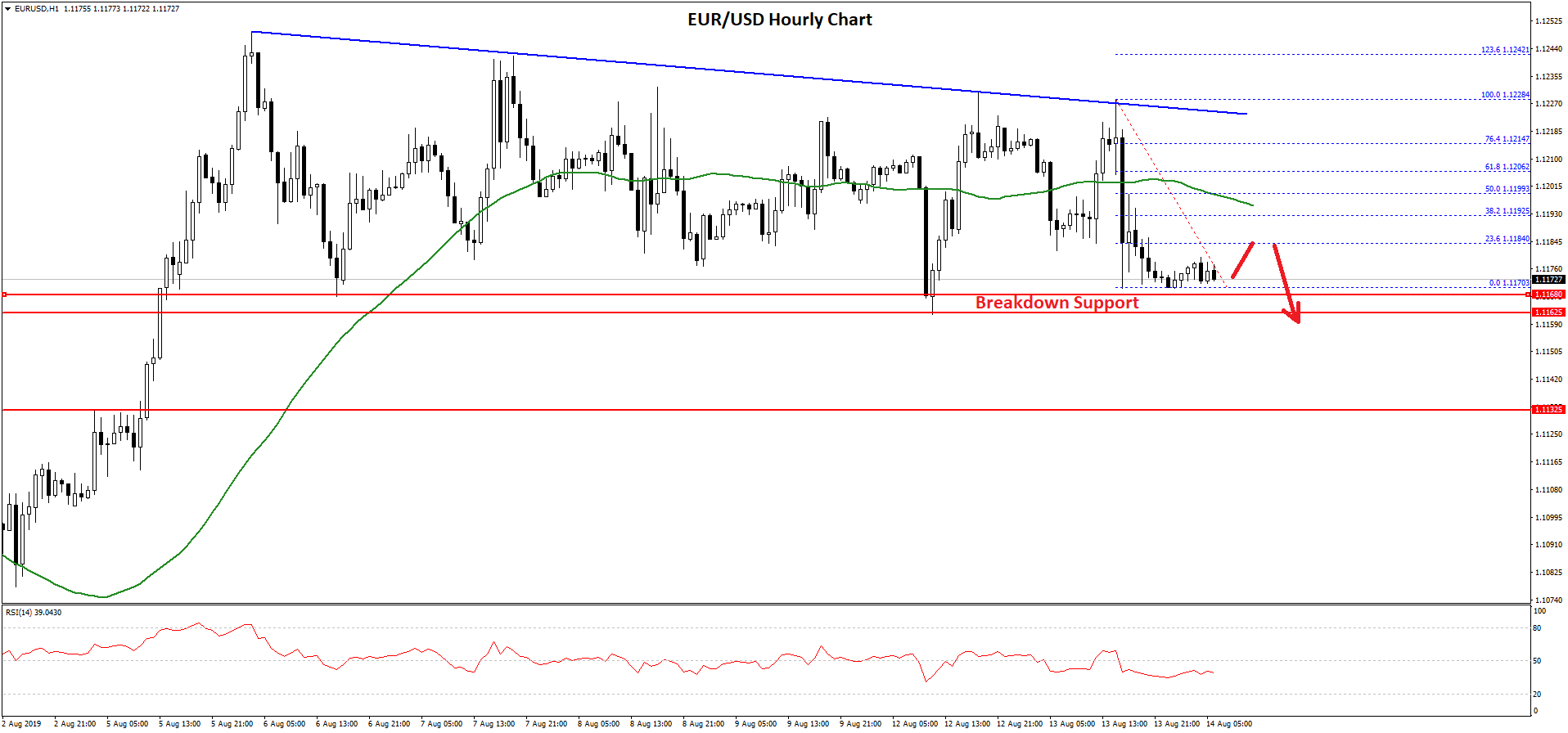 The pair corrected lower and declined below the 1.1200 support area. However, the 1.1160 area acted as strong support. The last swing low was formed near 1.1170 and the pair is now trading well below the 50 hourly simple moving average.