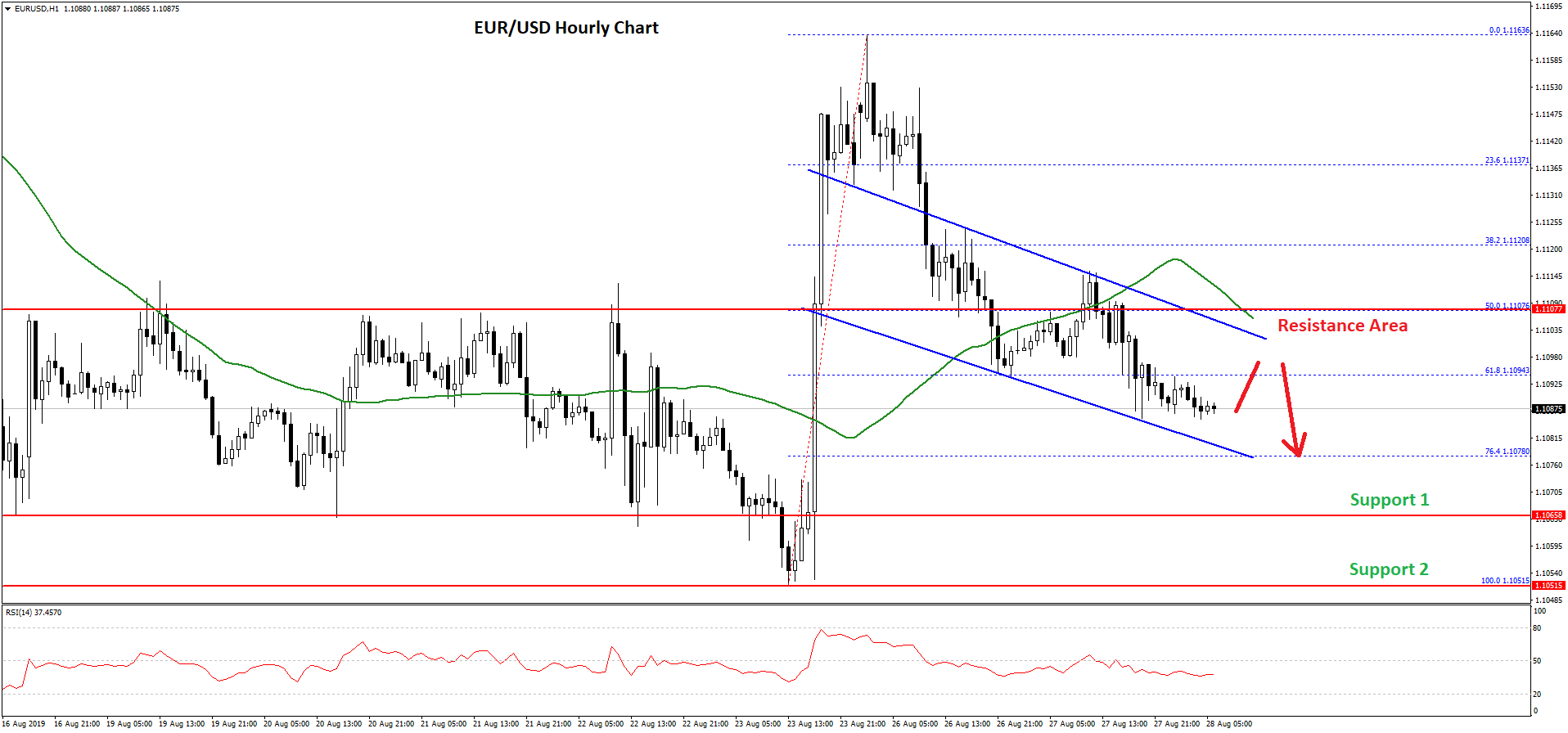 If EUR/USD breaks the 1.1080 support, it could revisit the main 1.1050 support area in the coming sessions.