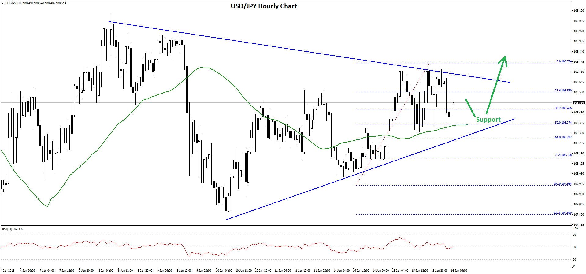However, the 108.40 level acted as a solid support along with the 50 hourly simple moving average. Moreover, the 50% Fib retracement level of the last wave from the 107.94 low to 108.76 high also acted as a support.