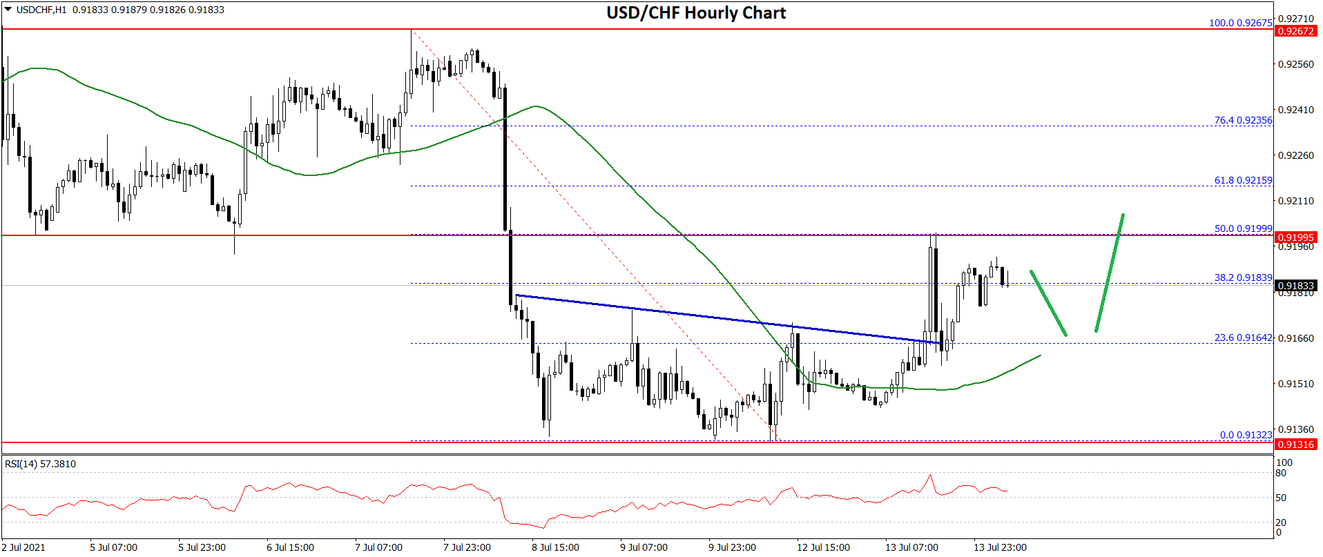 The US Dollar formed a strong support above the 0.9130 level against the Swiss franc. As a result, the USD/CHF pair started a fresh increase above the 0.9150 resistance.