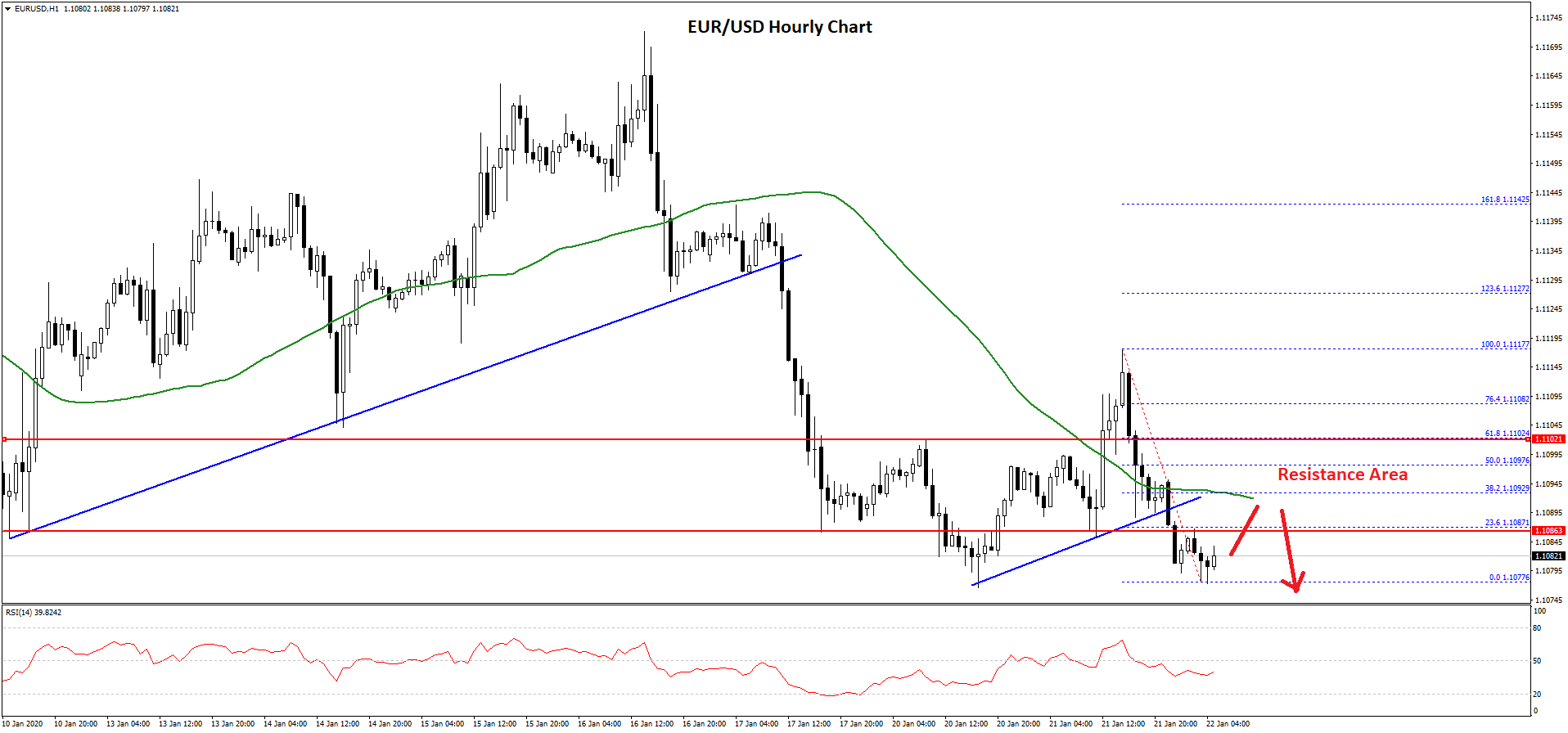 In the past few days, the Euro started a steady decline from well above the 1.1150 level against the US Dollar. The EUR/USD pair broke a couple of important supports near 1.1140 and 1.1120 to enter a bearish zone.