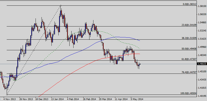 As of this writing, the pair is being traded near 1.4672. A hurdle can be seen around 1.4730, the 61.8% fib level ahead of 1.4940 that is the 50% fib level. A daily closing above 1.4940 could incite renewed buying interest, exposing rallies above the 15000 handle.