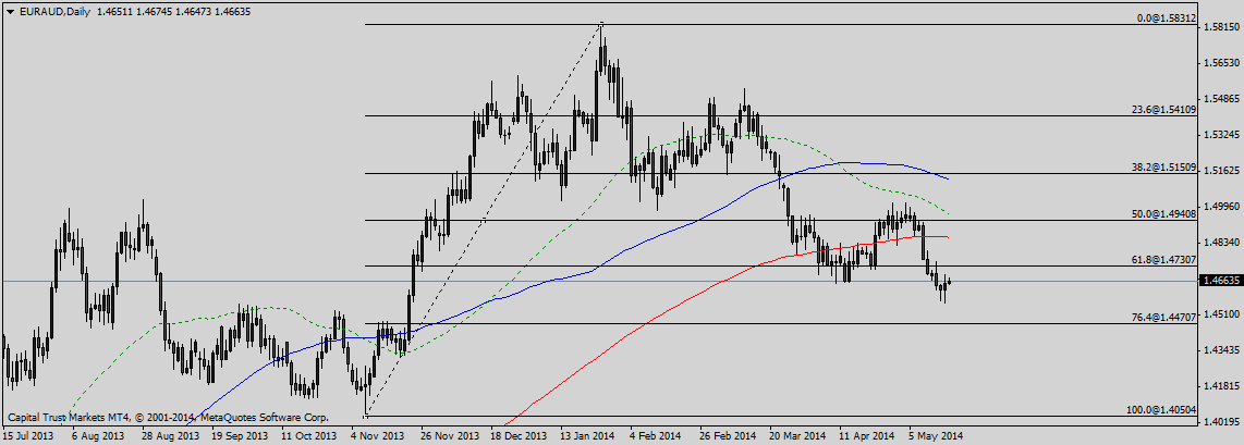 On the downside, the pair is expected to find a support near 1.4470 that is the 76.4% fib level ahead of 1.4050 which is the swing low of the previous wave as demonstrated in the following chart.