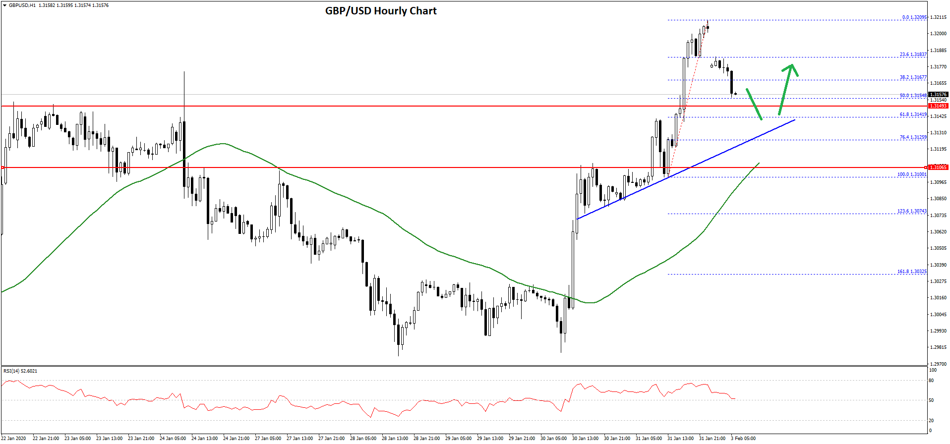 Moreover, there was a break above the 1.3160 resistance area and the pair settled nicely above the 50 hourly simple moving average. Finally, it climbed above the 1.3200 level and traded as high as 1.3209 on FXOpen.