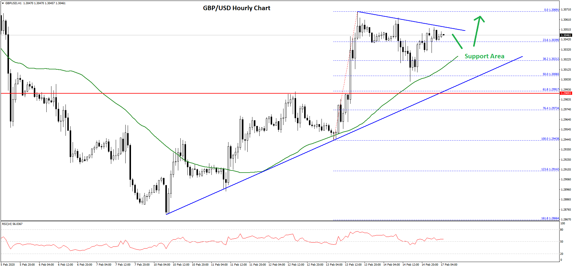 However, the pair remained well bid above the 1.3000 area and the 50 hourly simple moving average. Besides, there is a key bullish trend line forming with support near 1.3020 on the hourly chart of GBP/USD.