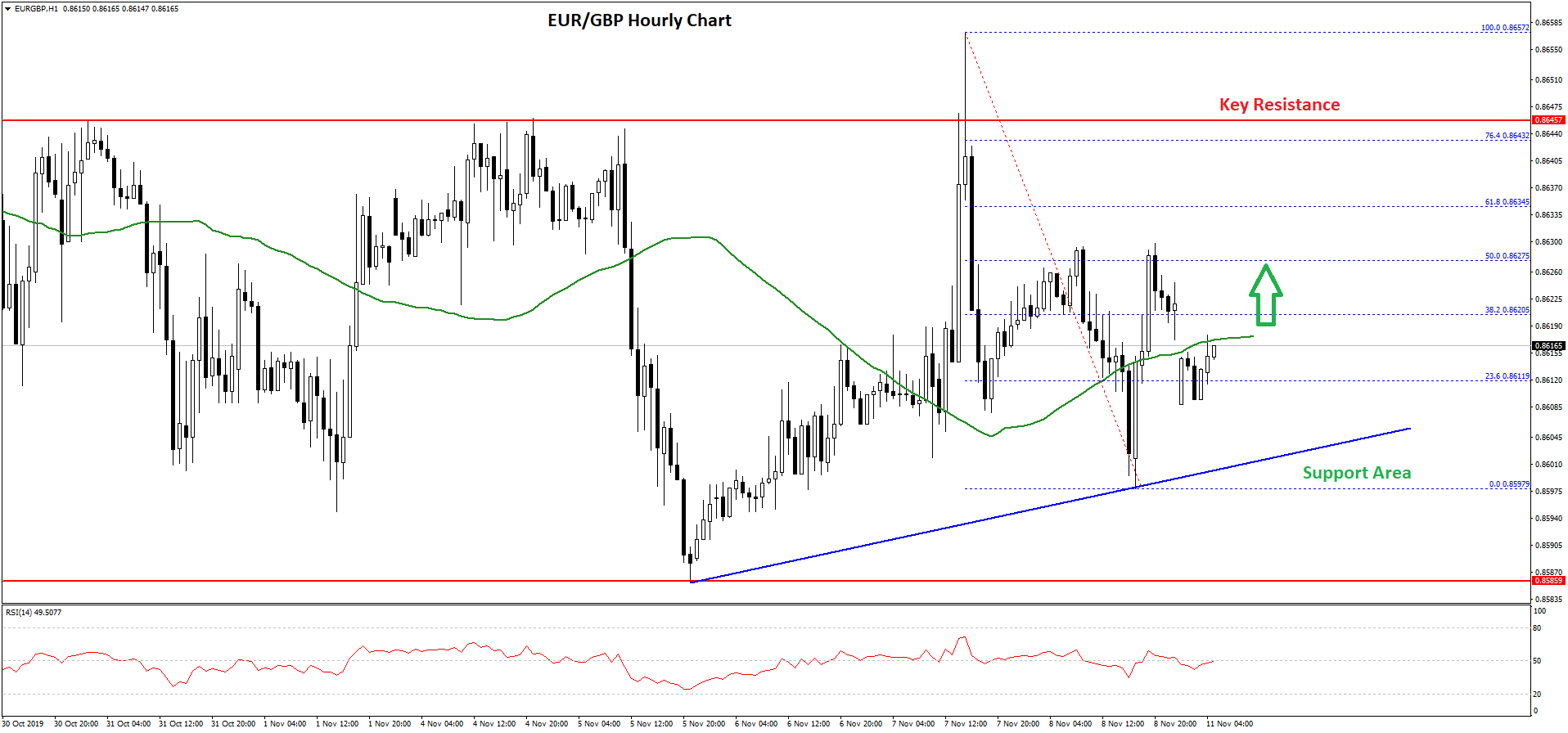 At the moment, the pair is trading near the 0.8620 resistance and the 50 hourly simple moving average. An immediate resistance area is near the 0.8630 level. It coincides with the 50% Fib retracement level of the recent decline from the 0.8657 high to 0.8597 low.