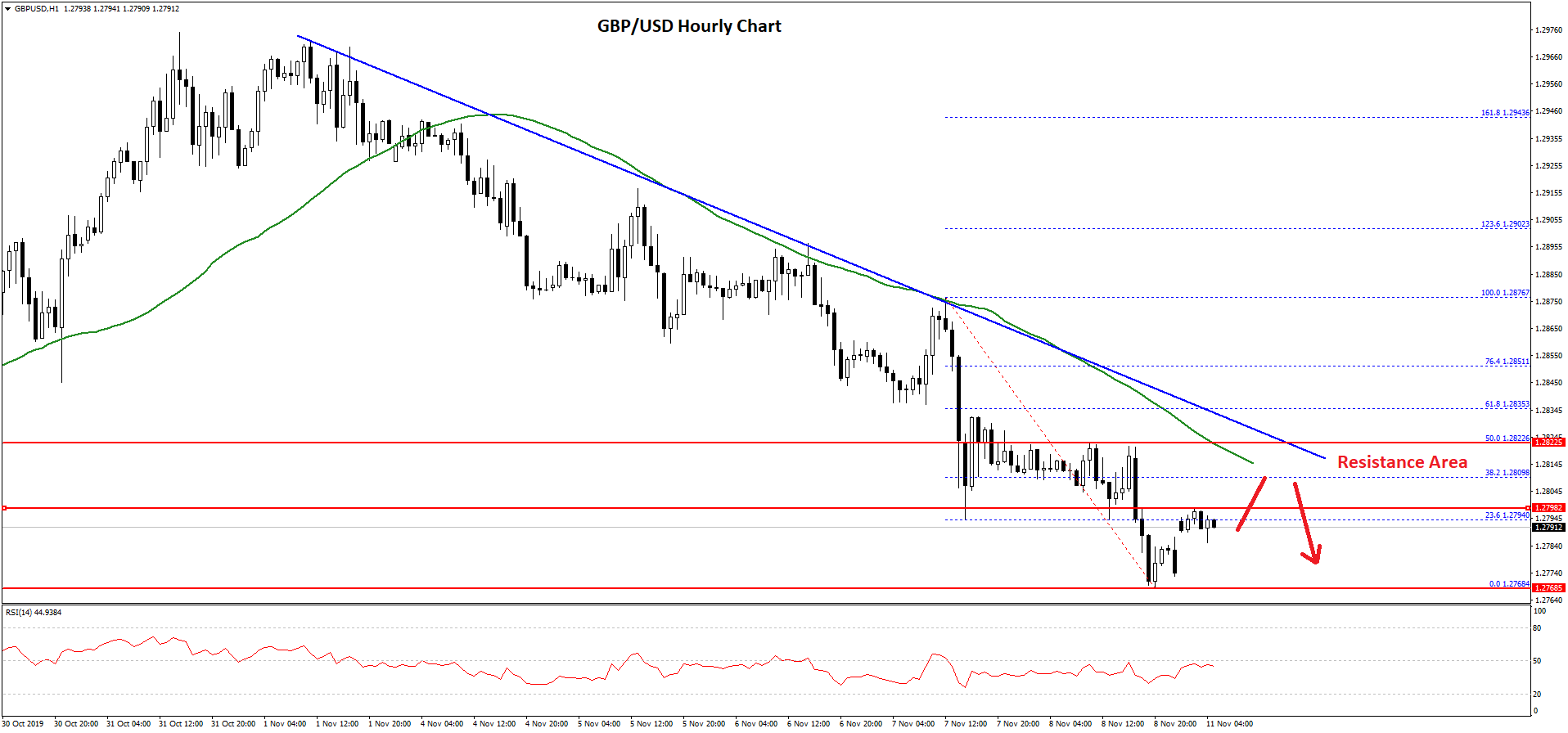 On the upside, there are many resistances near the 1.2800 and 1.2820 levels. Moreover, there is a key bearish trend line forming with resistance near 1.2820 on the hourly chart of GBP/USD.